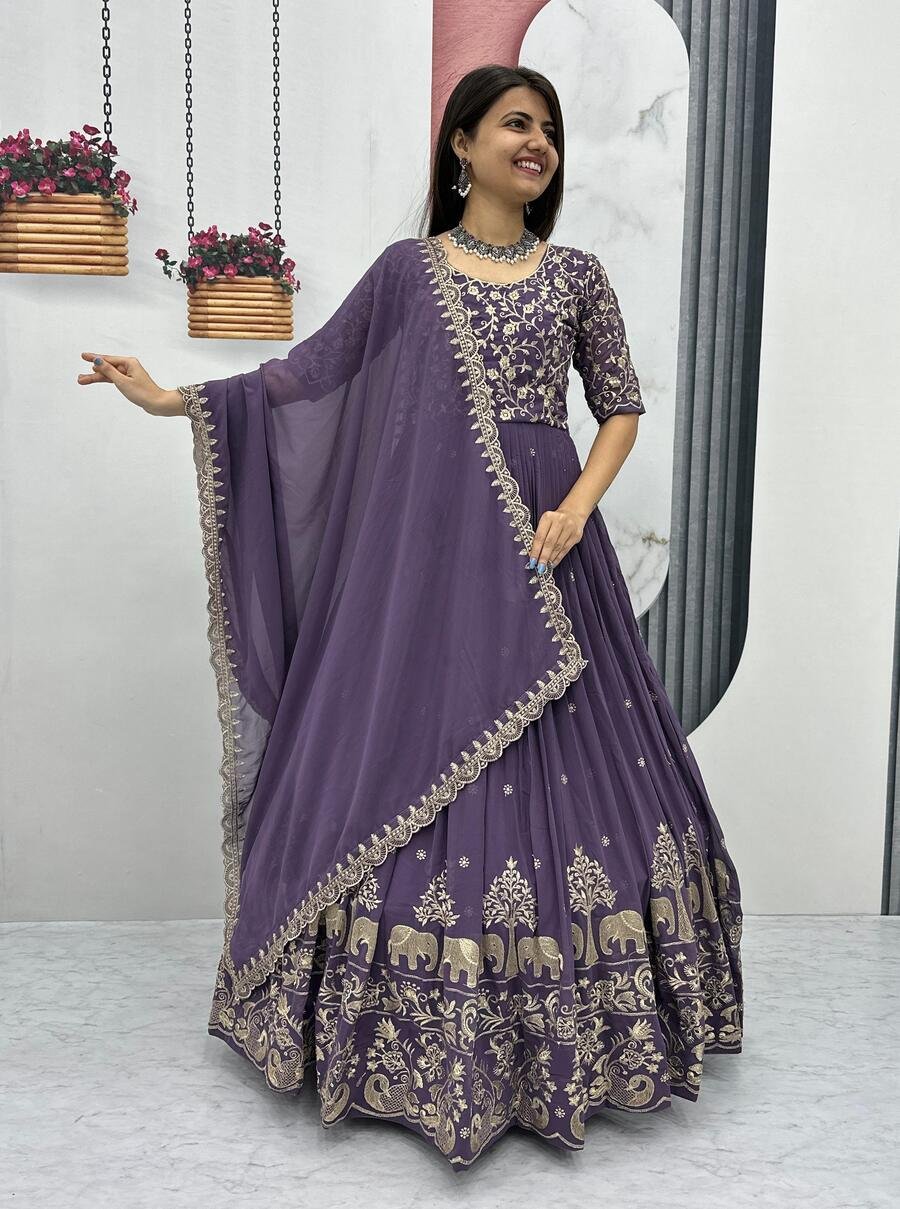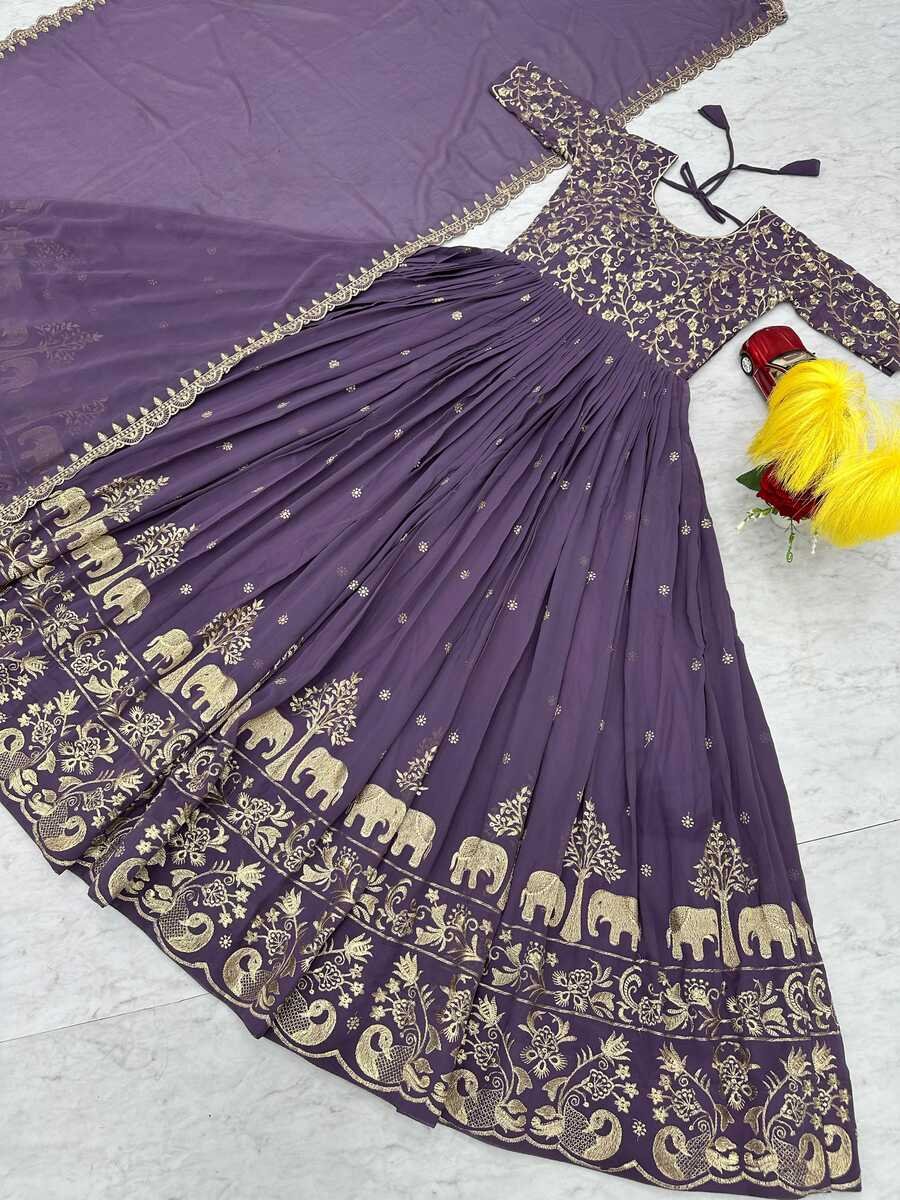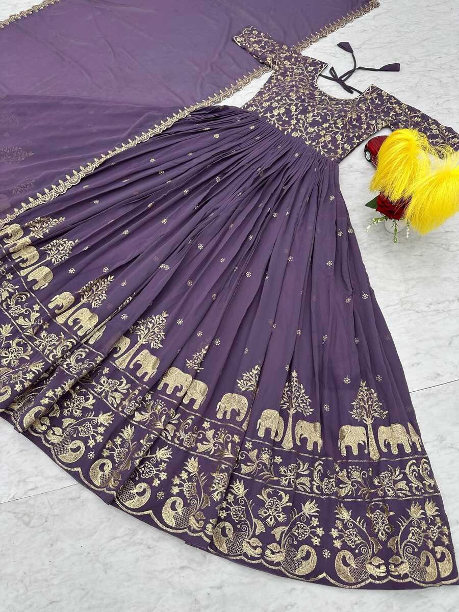DESIGNER GEORGETTE EMBROIDERY THREAD WORK GOWN WITH DUPATTA LAVENDER