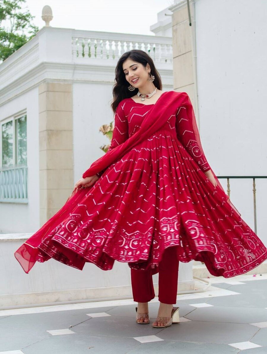 DESIGNER GEORGETTE EMBROIDERY WORK GOWN PANT WITH DUPATTA RANI