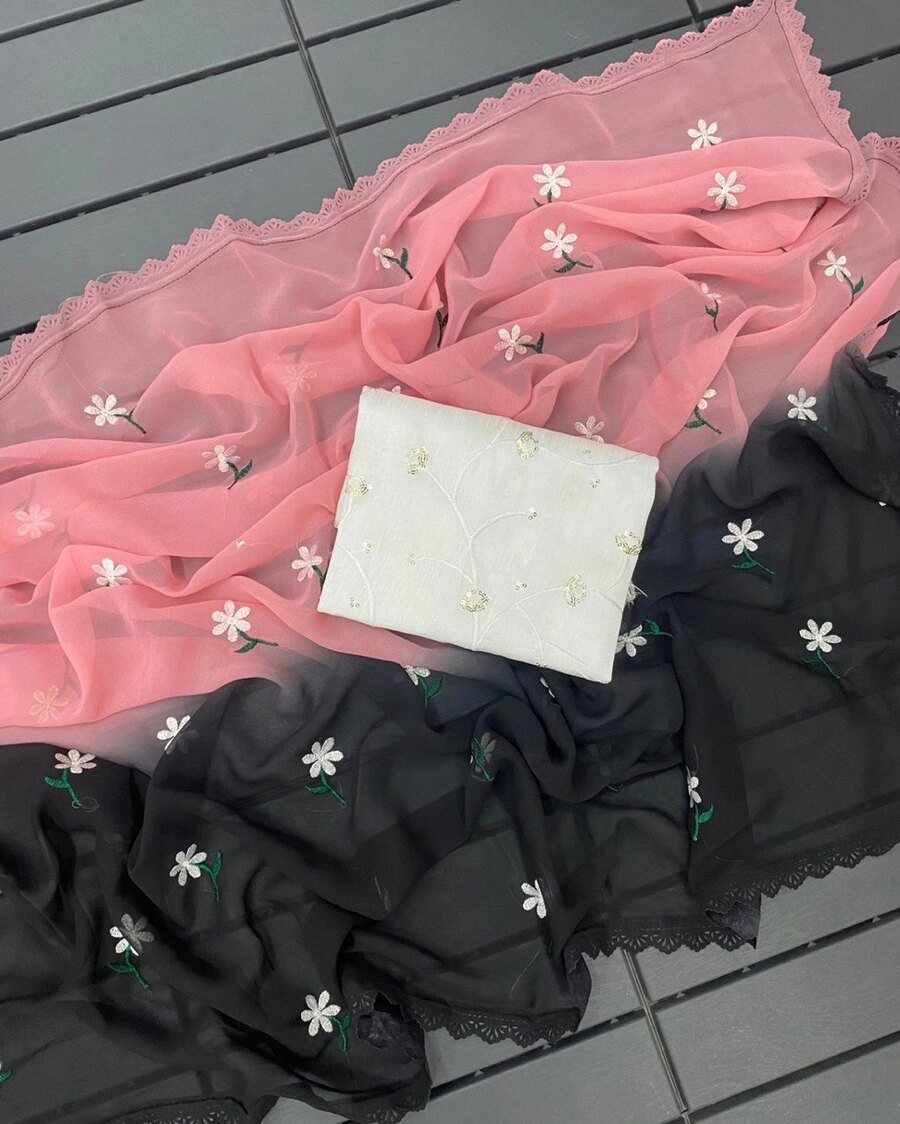 DESIGNER GEORGETTE EMBROIDERY WORK SAREE WITH UNSTITCHED BLOUSE CREAM