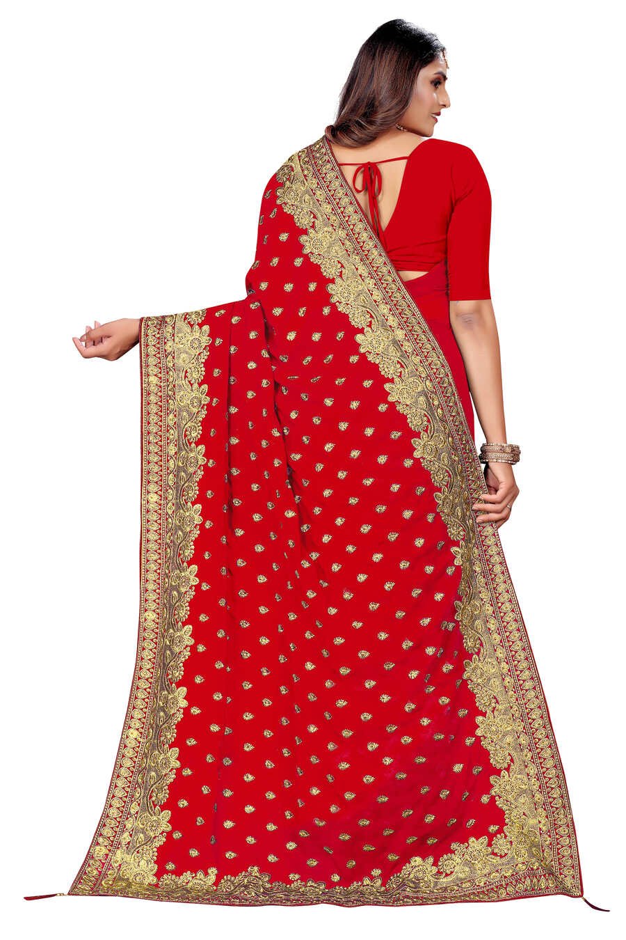 DESIGNER GEORGETTE EMBROIDERY WORK SAREE WITH UNSTITCHED BLOUSE RED