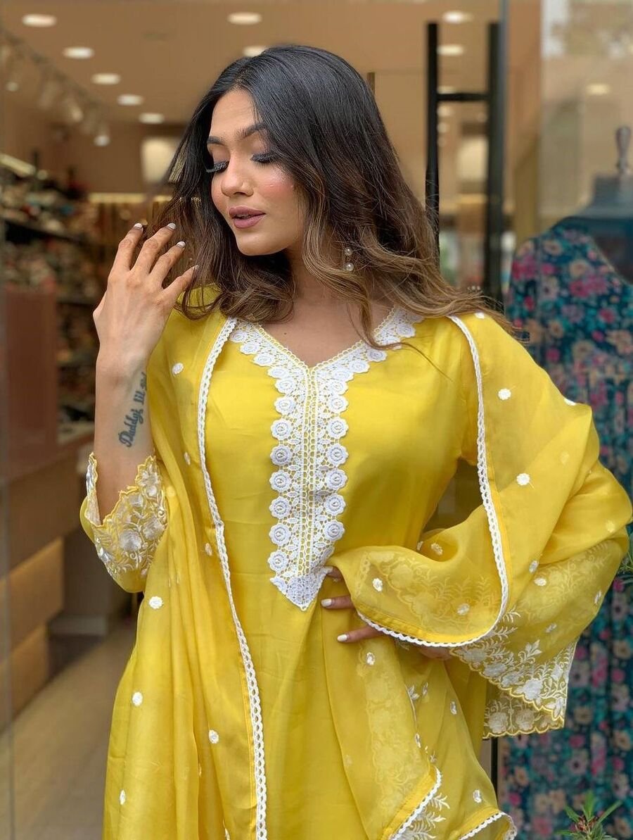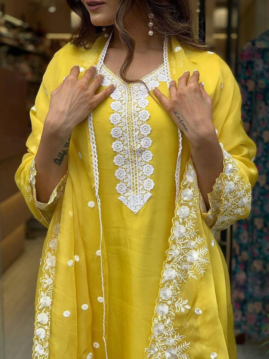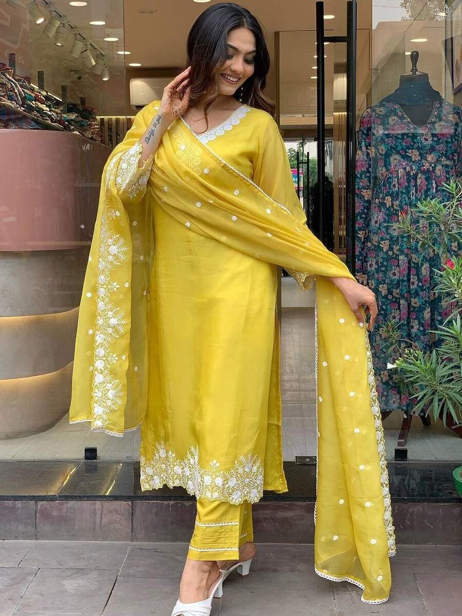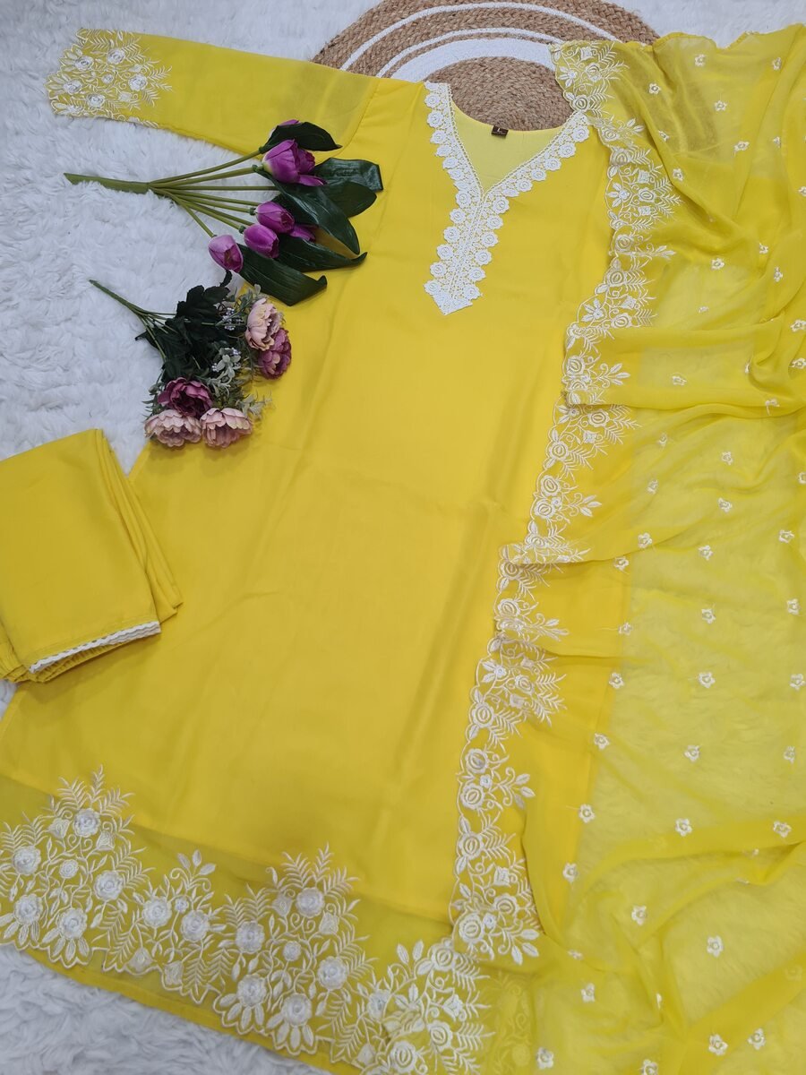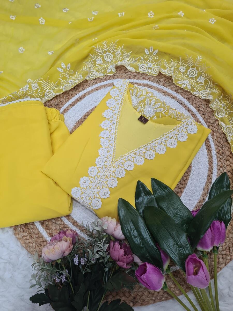 DESIGNER GEORGETTE EMBROIDERY WORK TOP BOTTOM WITH DUPATTA YELLOW