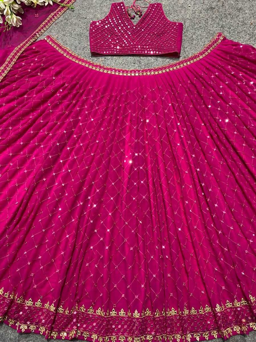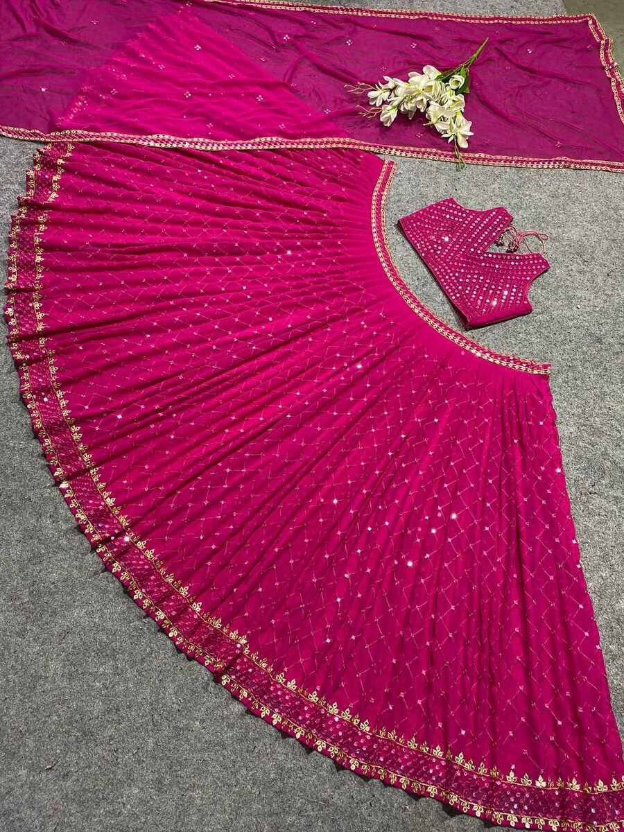 DESIGNER GEORGETTE MULTI NEEDLE ,SEQUENCE , CODING, EMBROIDERY WORK AND ZARI WORK LACE BORDER LEHENGA CHOLI WITH DUPATTA PINK