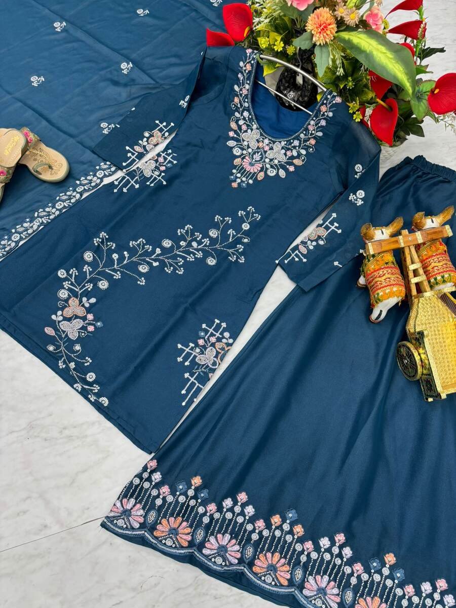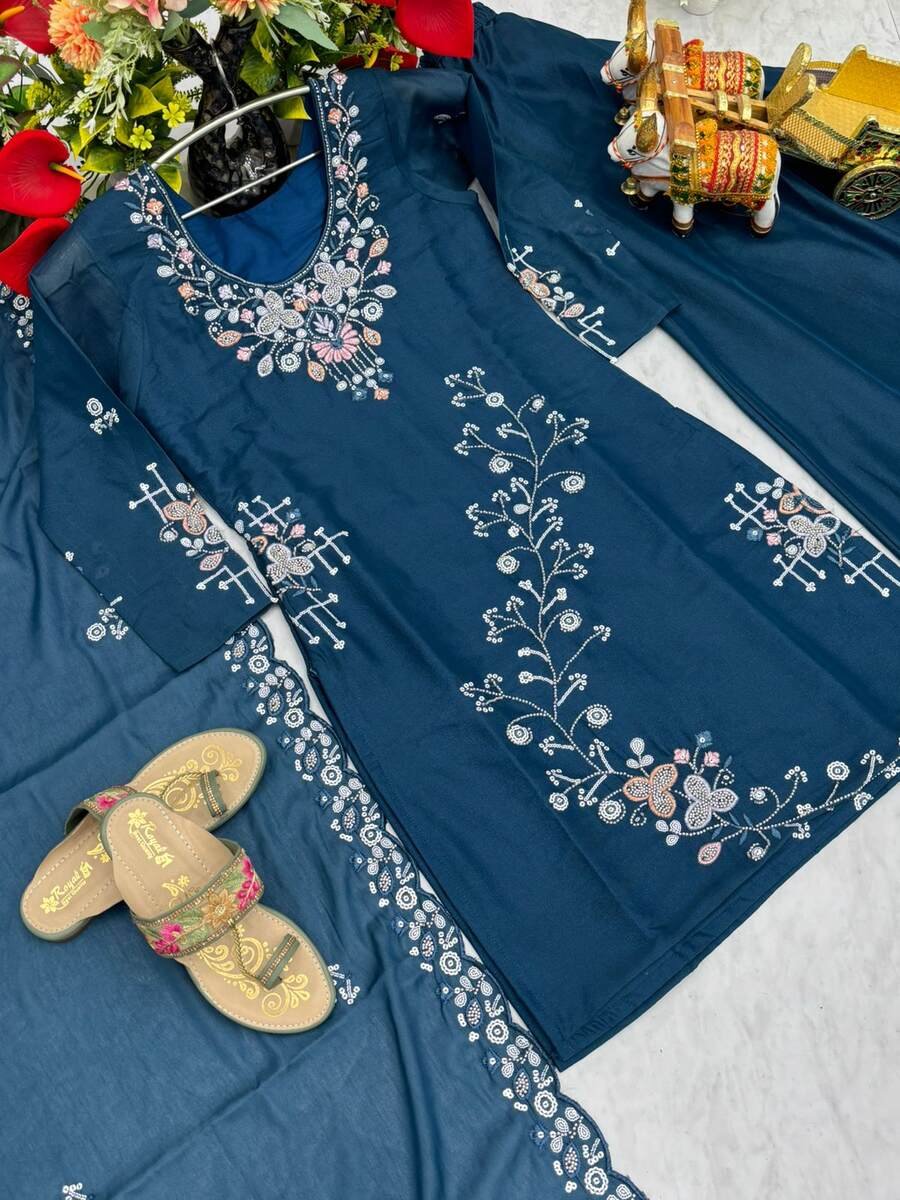 DESIGNER GEORGETTE SEQUENCE EMBROIDERY MOTI WORK TOP PALAZZO WITH DUPATTA RAMA