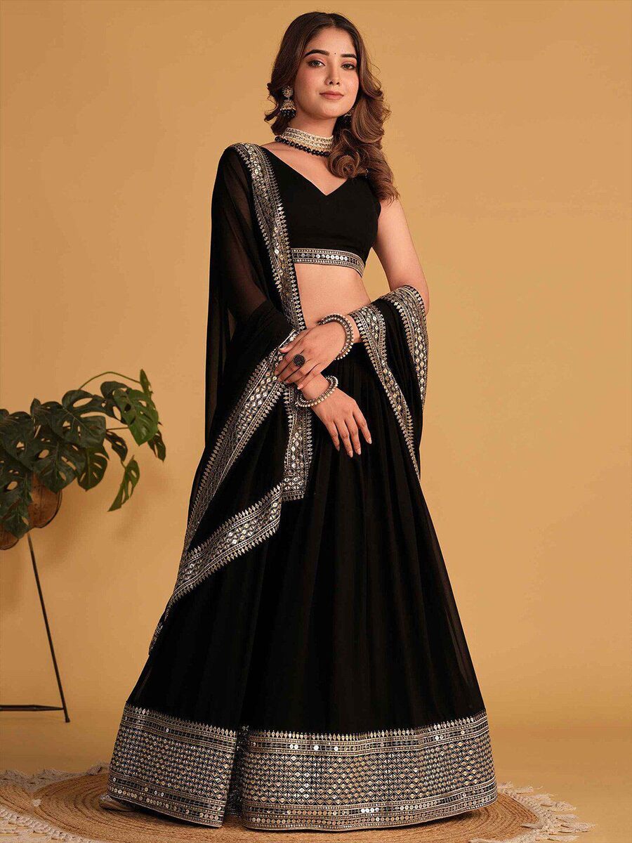 DESIGNER GEORGETTE SEQUENCE EMBROIDERY WORK LEHENGA CHOLI WITH DUPATTA BLACK