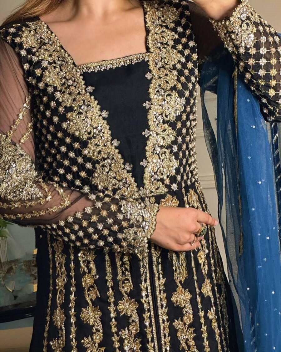TOP : HEAVY GEORGETTE WITH SEQUENCE EMBROIDERY WORK AND CUT WORK (FULLY STITCHED)