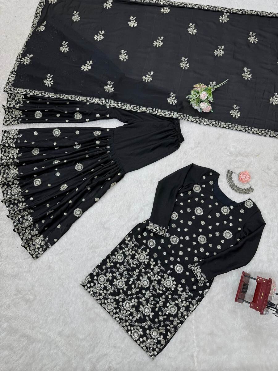 DESIGNER GEORGETTE THREAD SEQUENCE WORK TOP SHARARA WITH DUPATTA BLACK