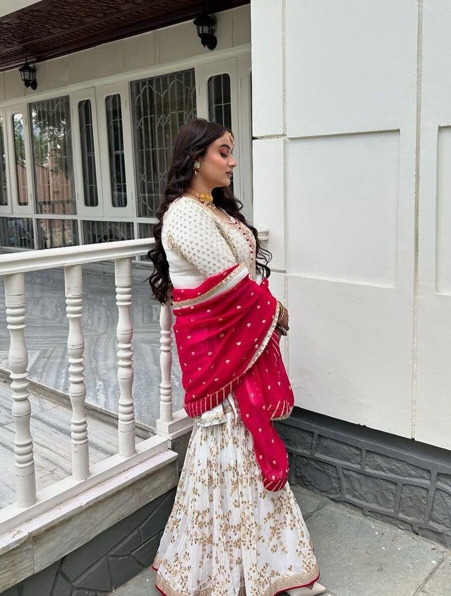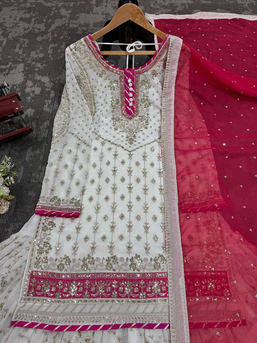 DESIGNER GEORGETTE THREAD WITH SEQUENCE WORK TOP SHARARA WITH DUPATTA WHITE