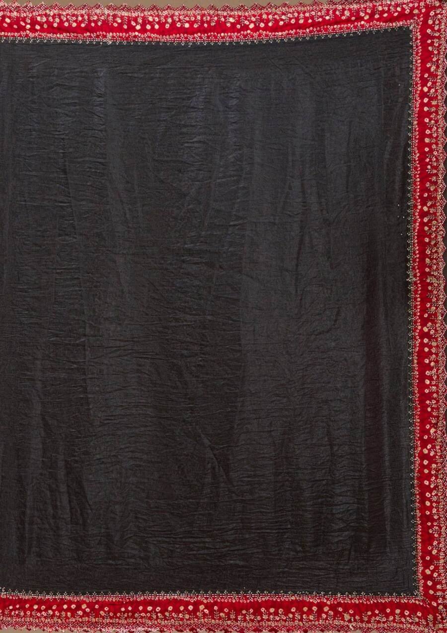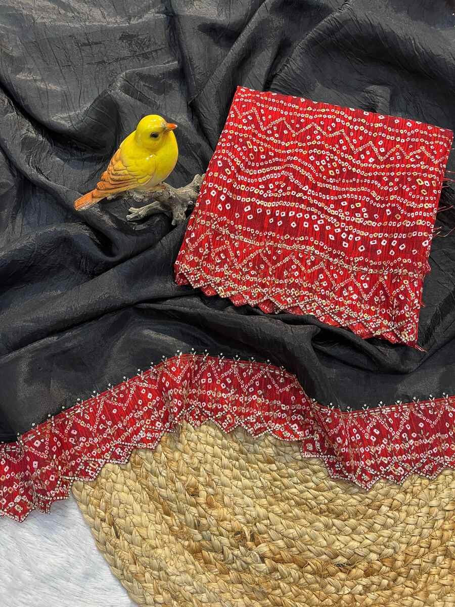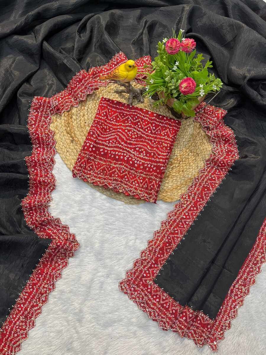 WORK : BANDHANI BORDER WITH BEADS & STONES HANDWORK WITH CUTWORK BORDER PLAIN SAREE BODY PARTS