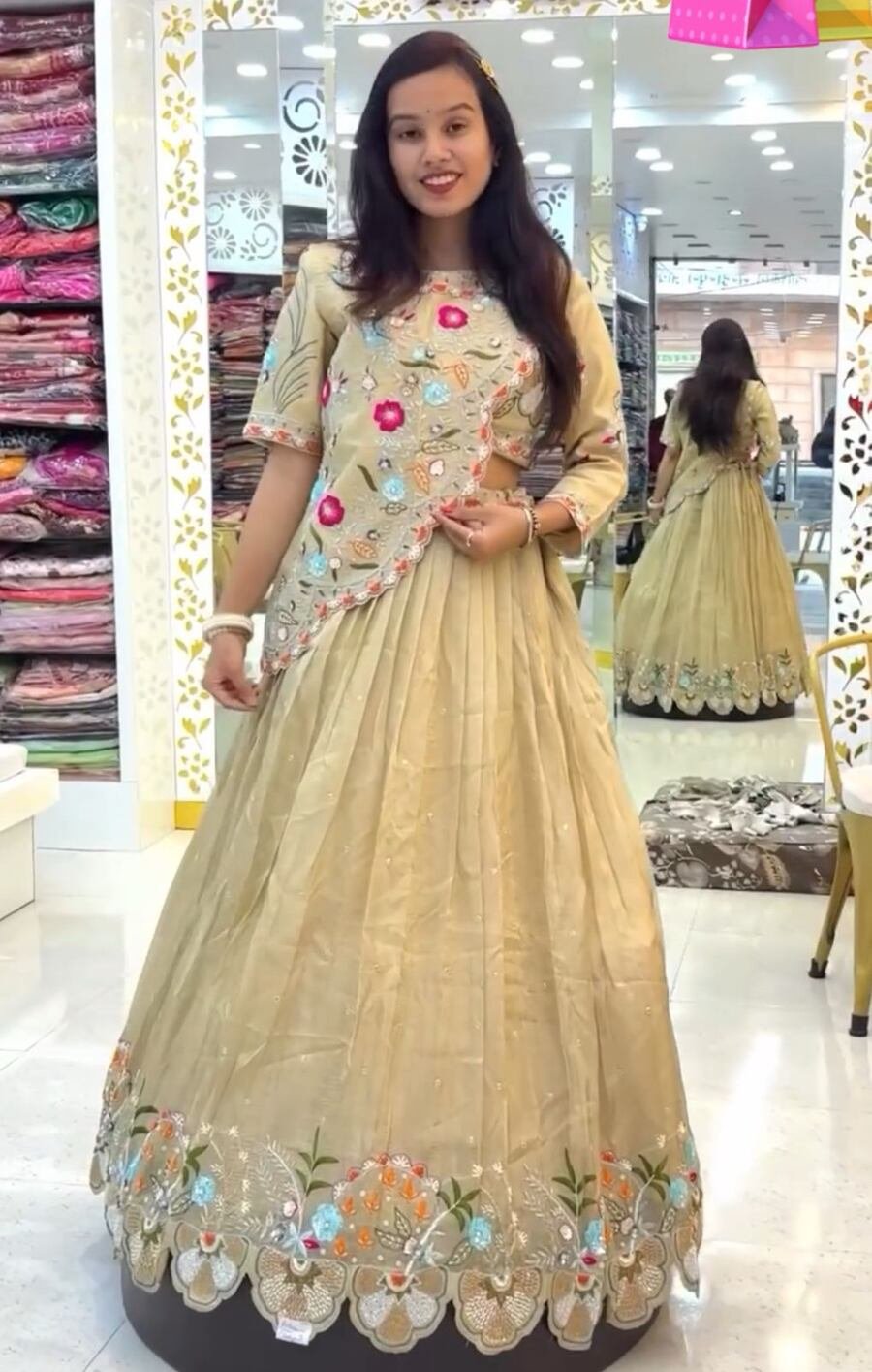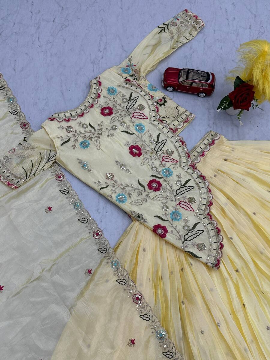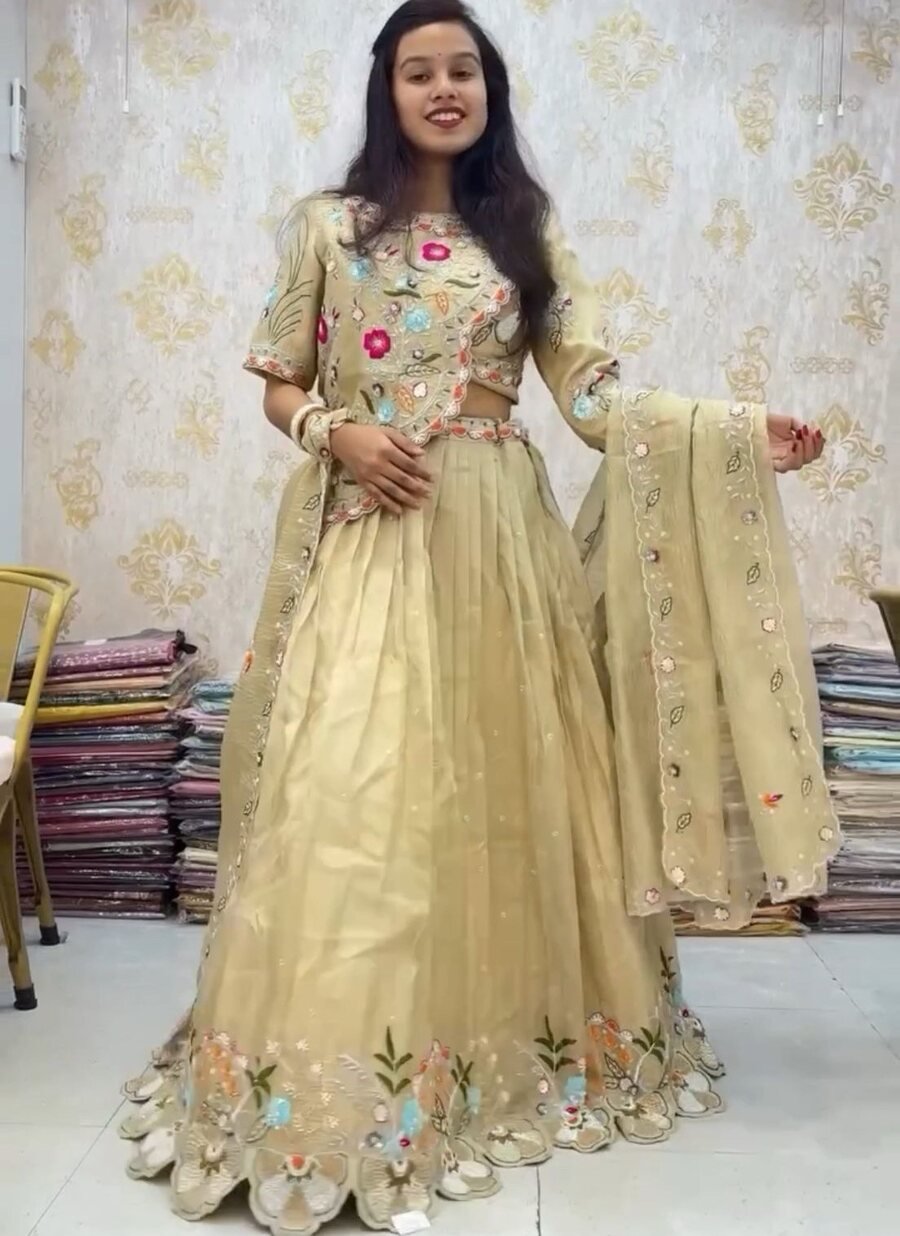 DESIGNER GOLD CRUSH EMBROIDERY THREAD AND SEQUENCE WORK TOP LEHENGA JACKET WITH DUPATTA CREAM