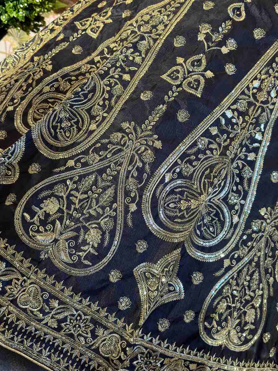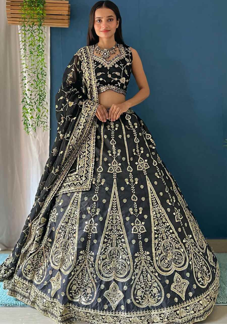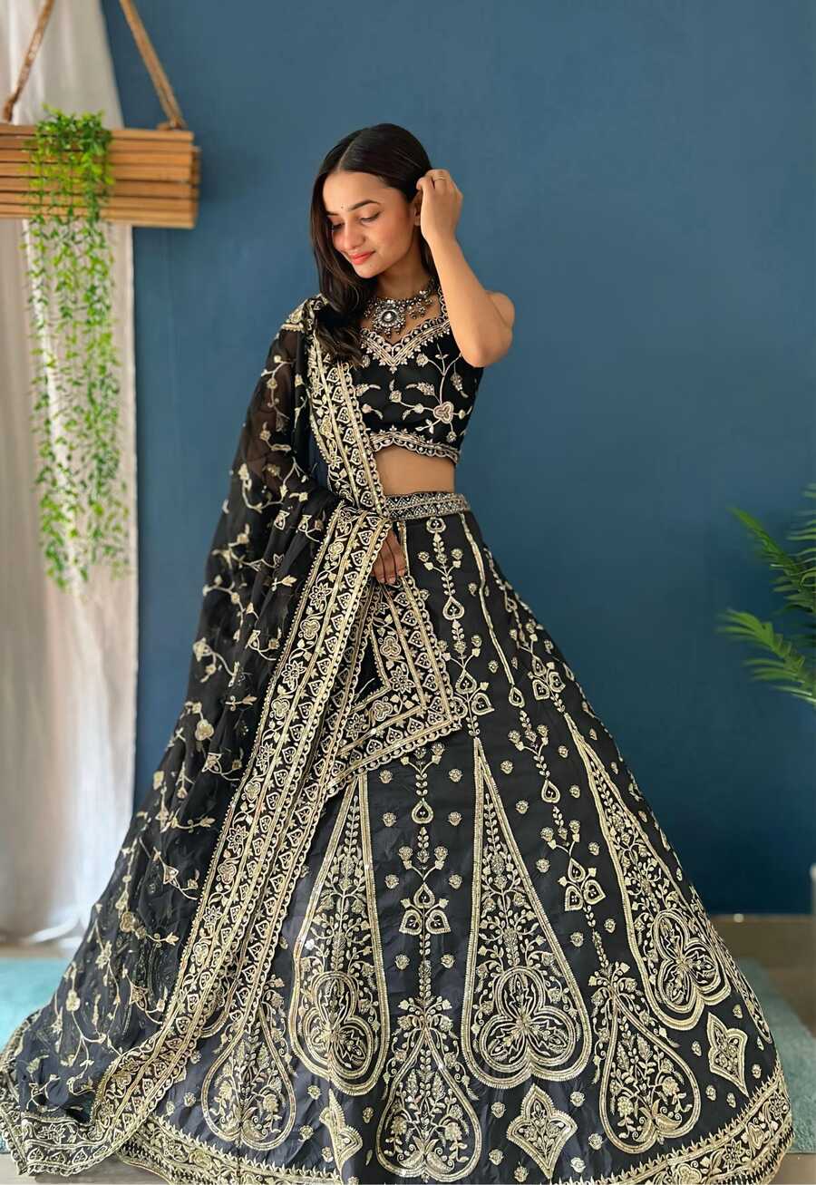 DESIGNER JALPARI SILK EMBROIDERY SEQUENCE DESIGN WORK LEHENGA CHOLI WITH DUPATTA BLACK