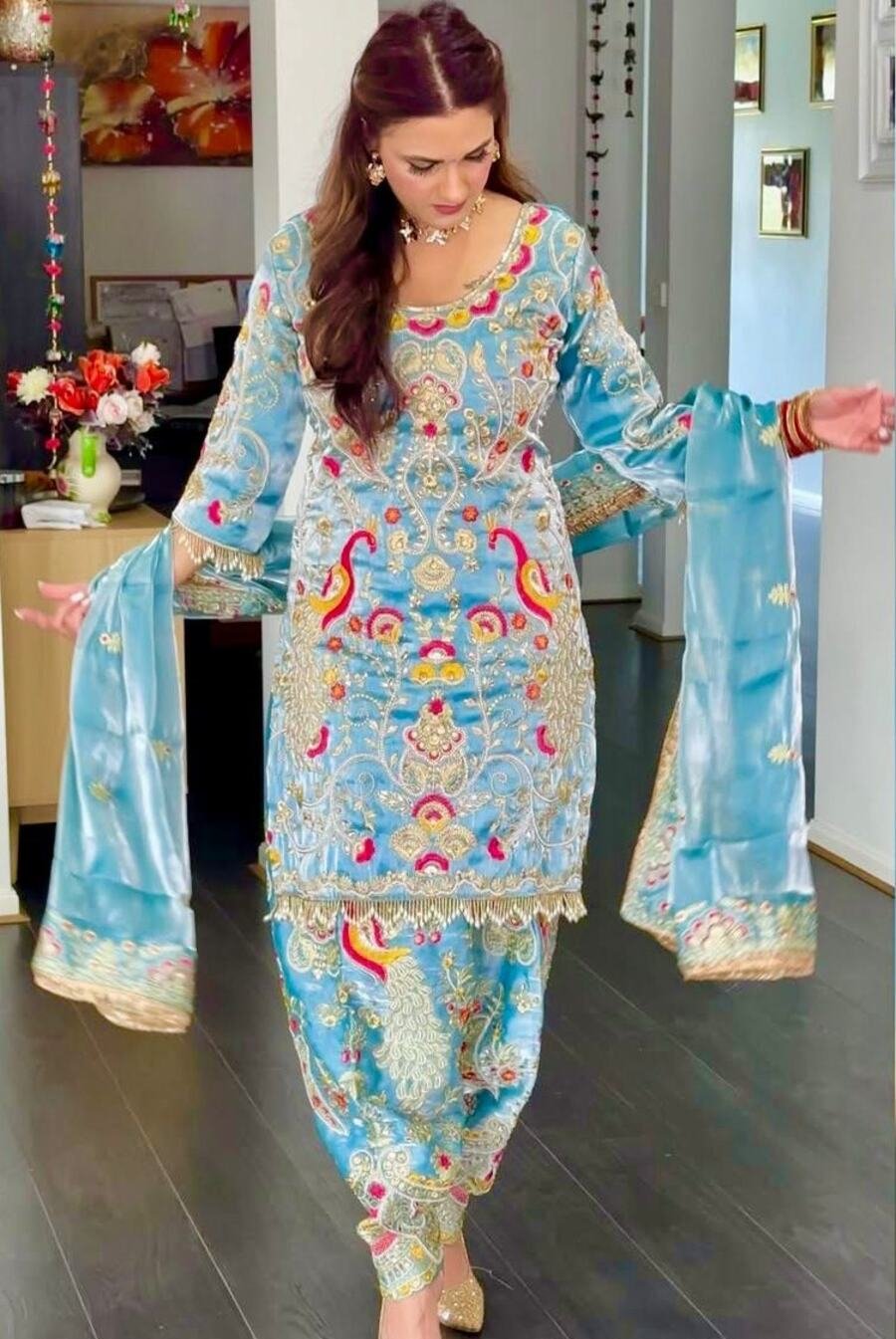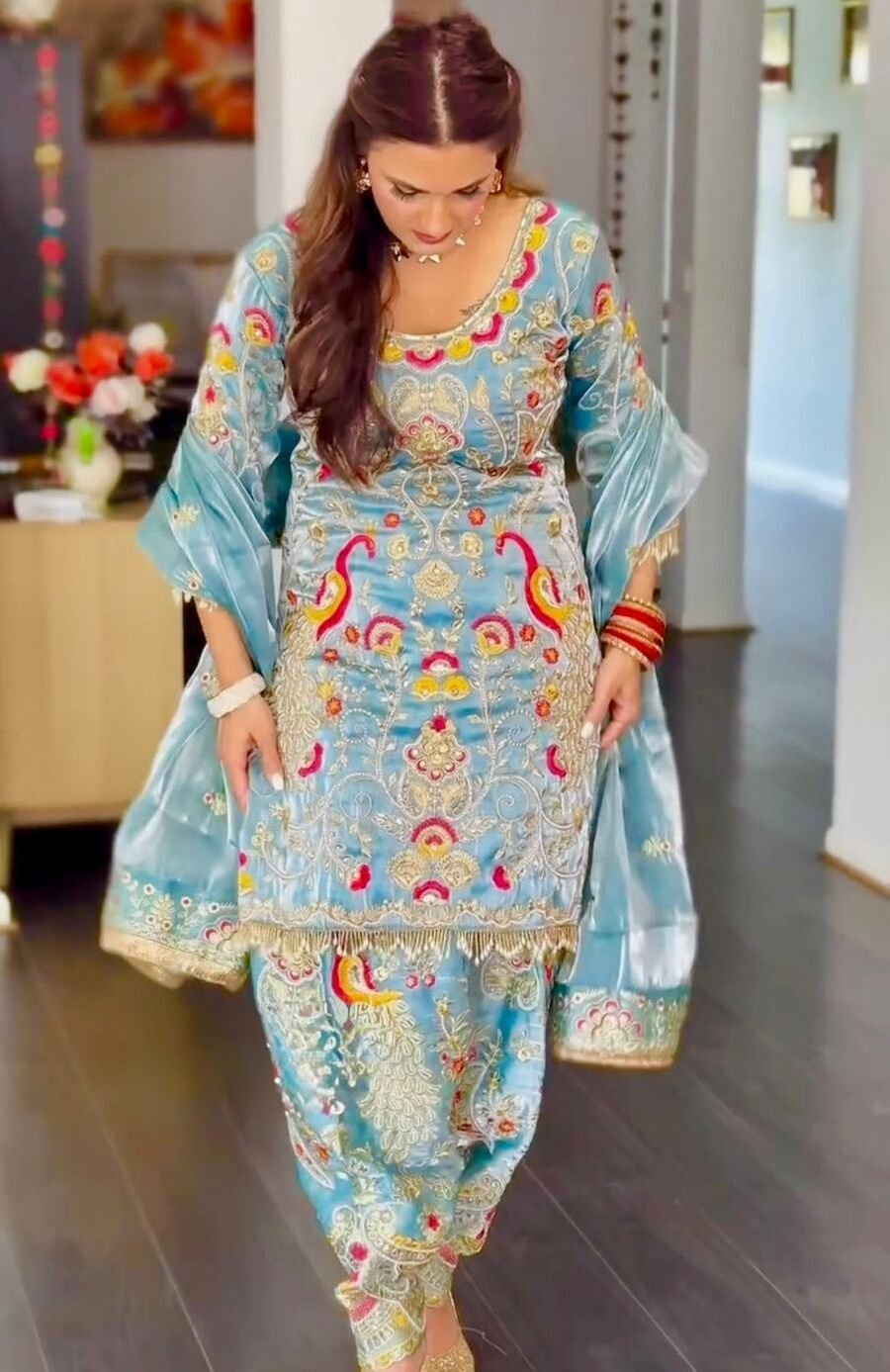 WORK : HEAVY EMBROIDERY CHAIN SEQUENCE WORK WITH FULL HAND WORK AND FANCY LACE