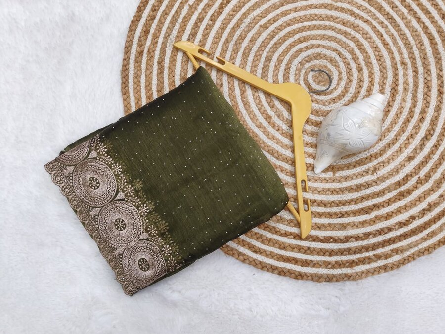 WORK :- EMBROIDERY WORK WITH CUT WORK BORDER ALL OVER DIAMOND WORK ON SAREE