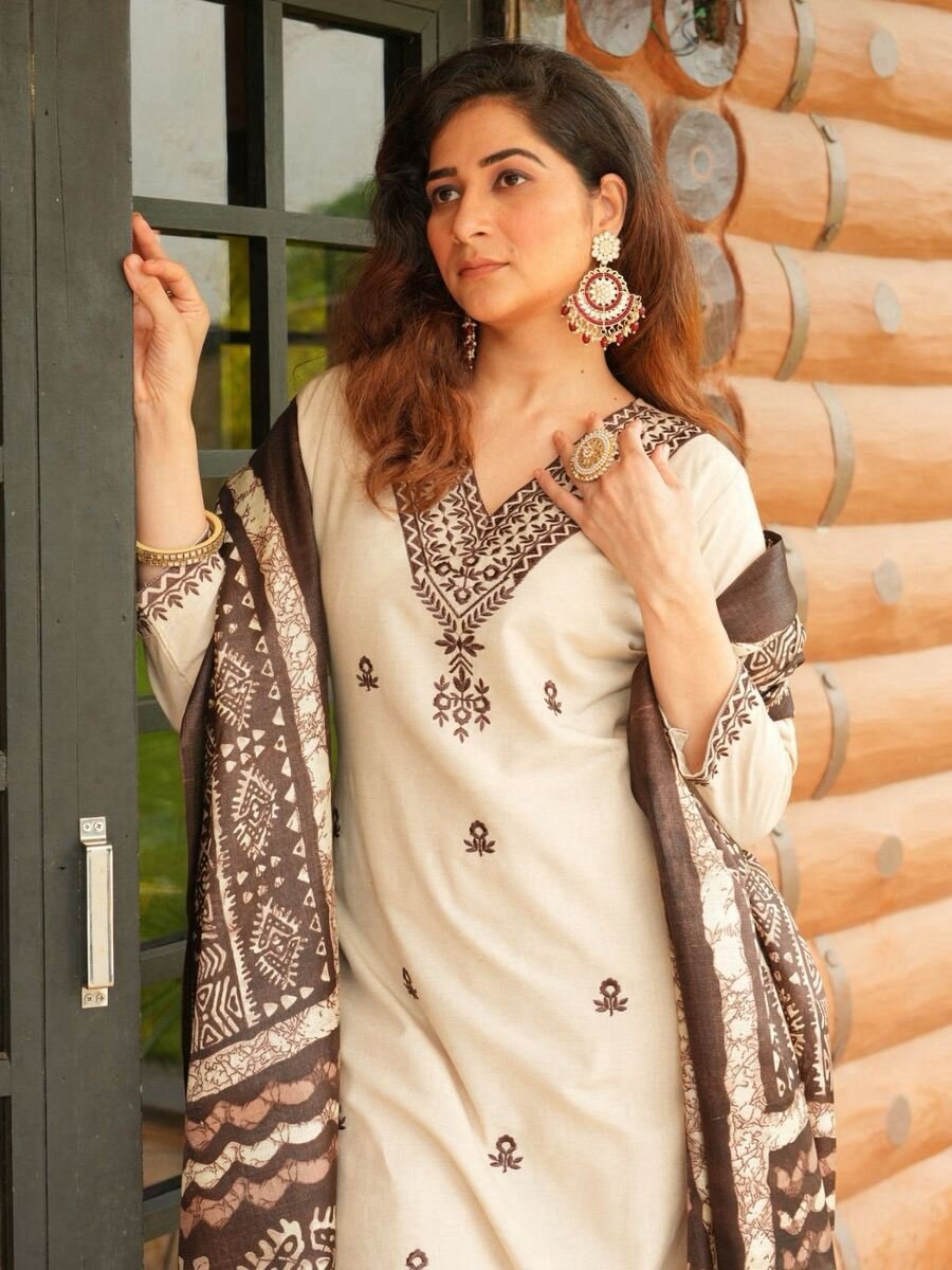 TOP FABRIC :- KHADI COTTON WITH BEAUTIFUL EMBROIDERY