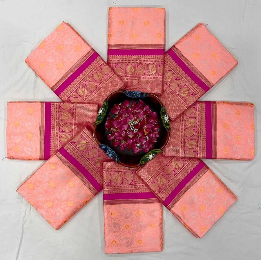 DESIGNER LICHI SILK JACQUARD WORK SAREE WITH UNSTITCHED BLOUSE PEACH