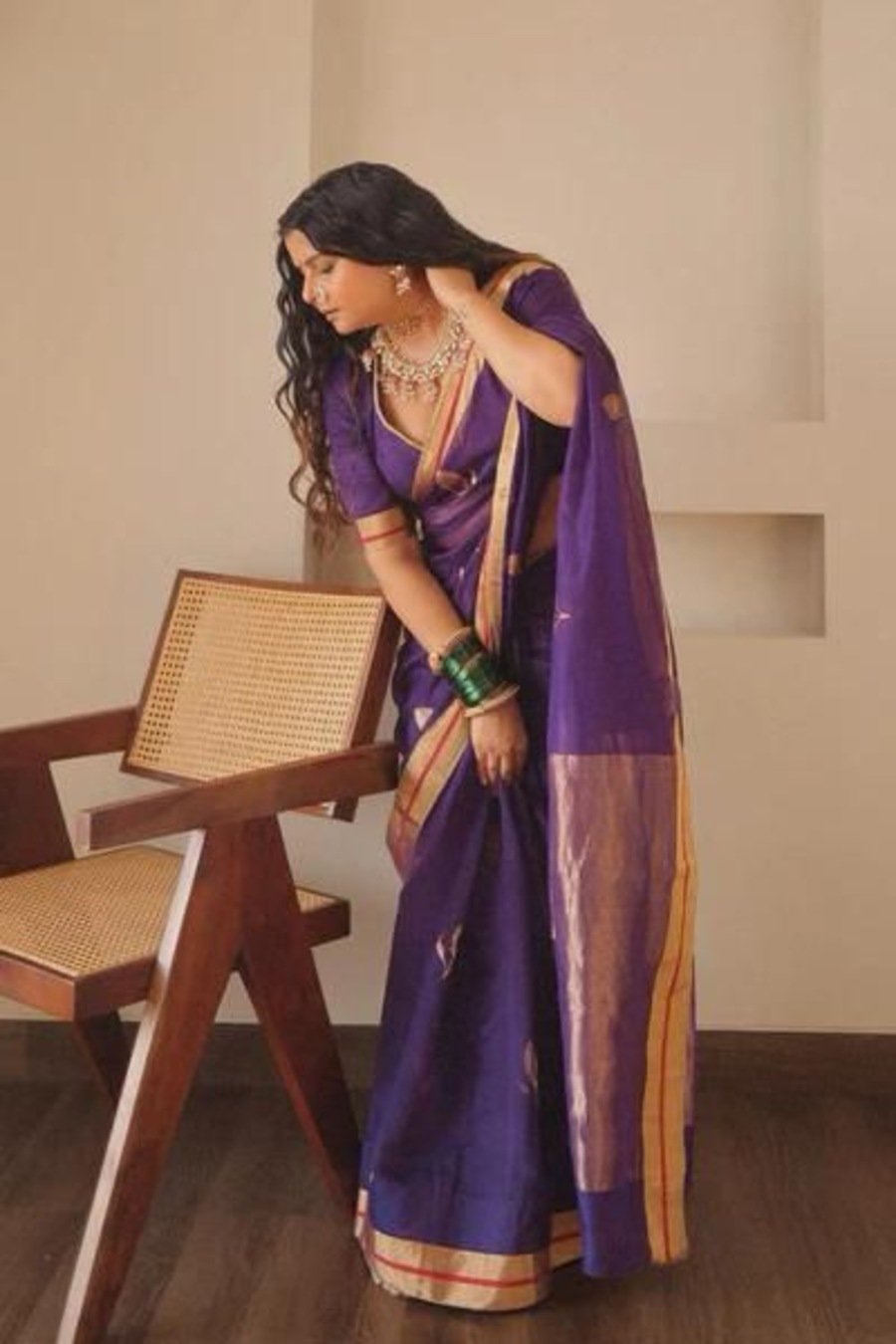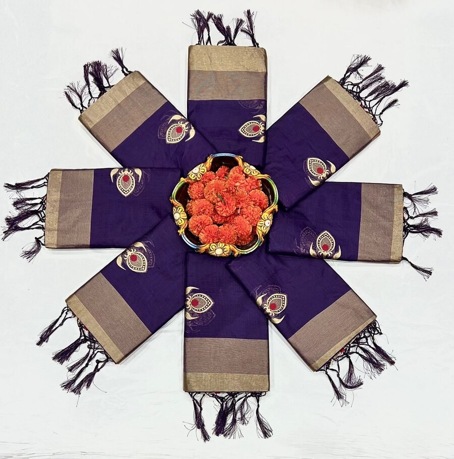 DESIGNER LICHI SILK JACQUARD WORK SAREE WITH UNSTITCHED BLOUSE PURPLE
