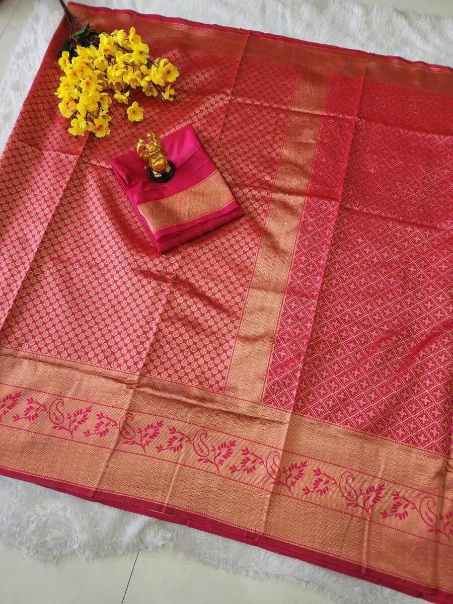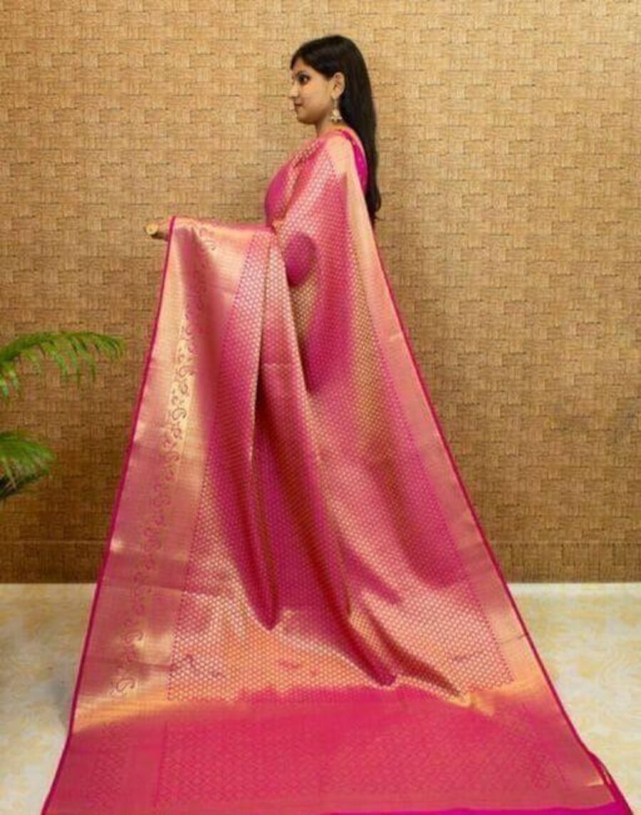 DESIGNER LICHI SILK ZARI WEAVING WORK SAREE WITH UNSTITCHED BLOUSE PINK