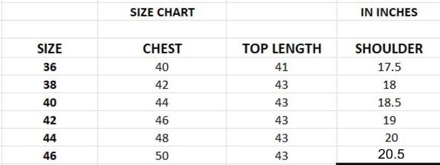 SIZE : S-36, M-38, L-40, XL-42, XXL-44, XXXL-46