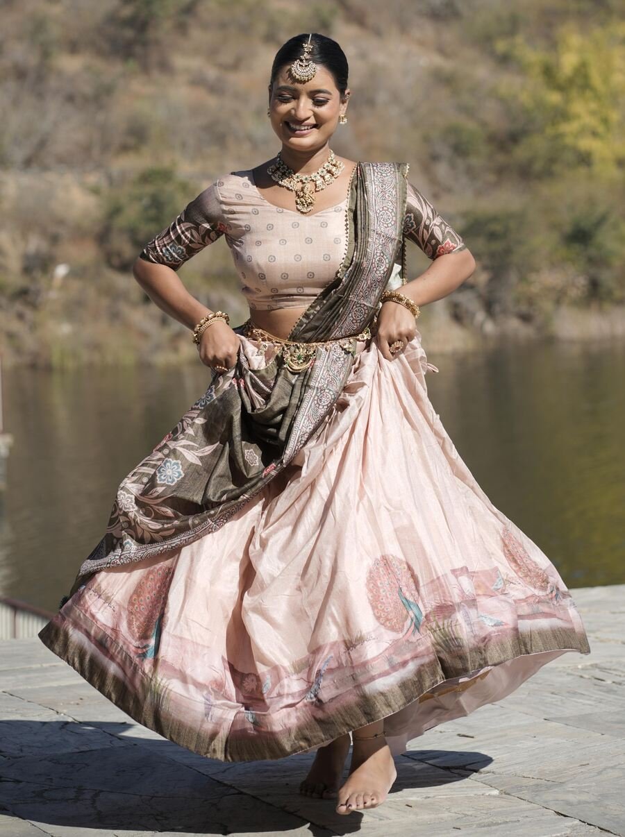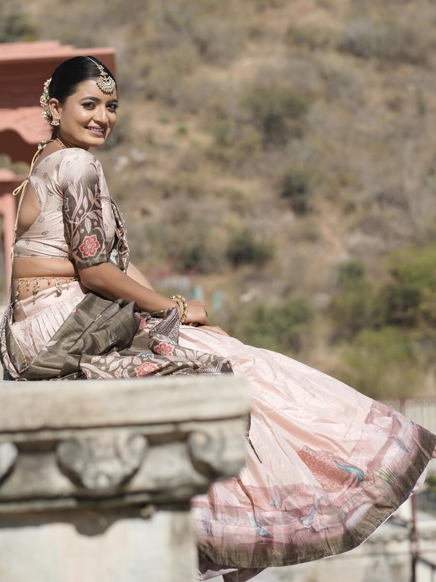PACKAGE CONTAIN : LEHENGA, BLOUSE, DUPATTA, DRAWSTRING WITH ZIP, TASSELS