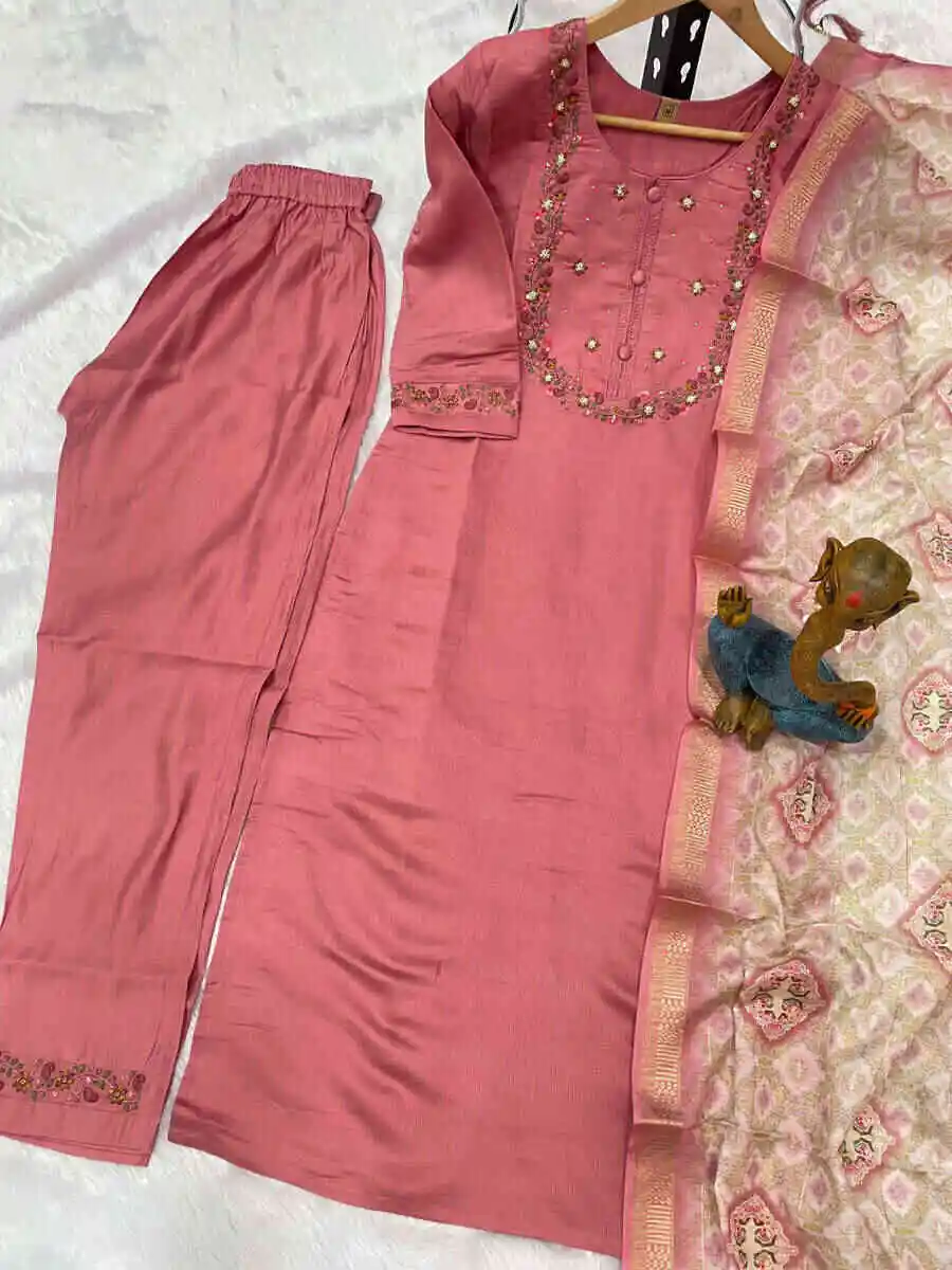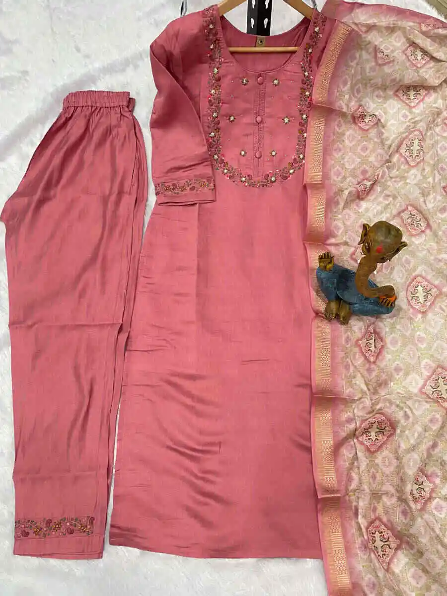 DESIGNER MARINA SILK MULTI EMBROIDERY THREAD WITH HAND WORK TOP BOTTOM WITH DUPATTA PEACH