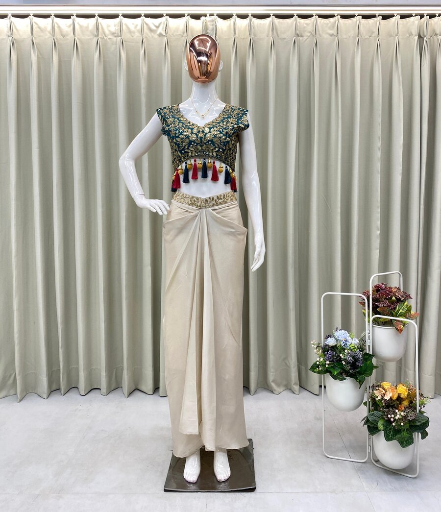 FABRIC : CREPE SILK WITH SEQUENCE EMBROIDERY BELT