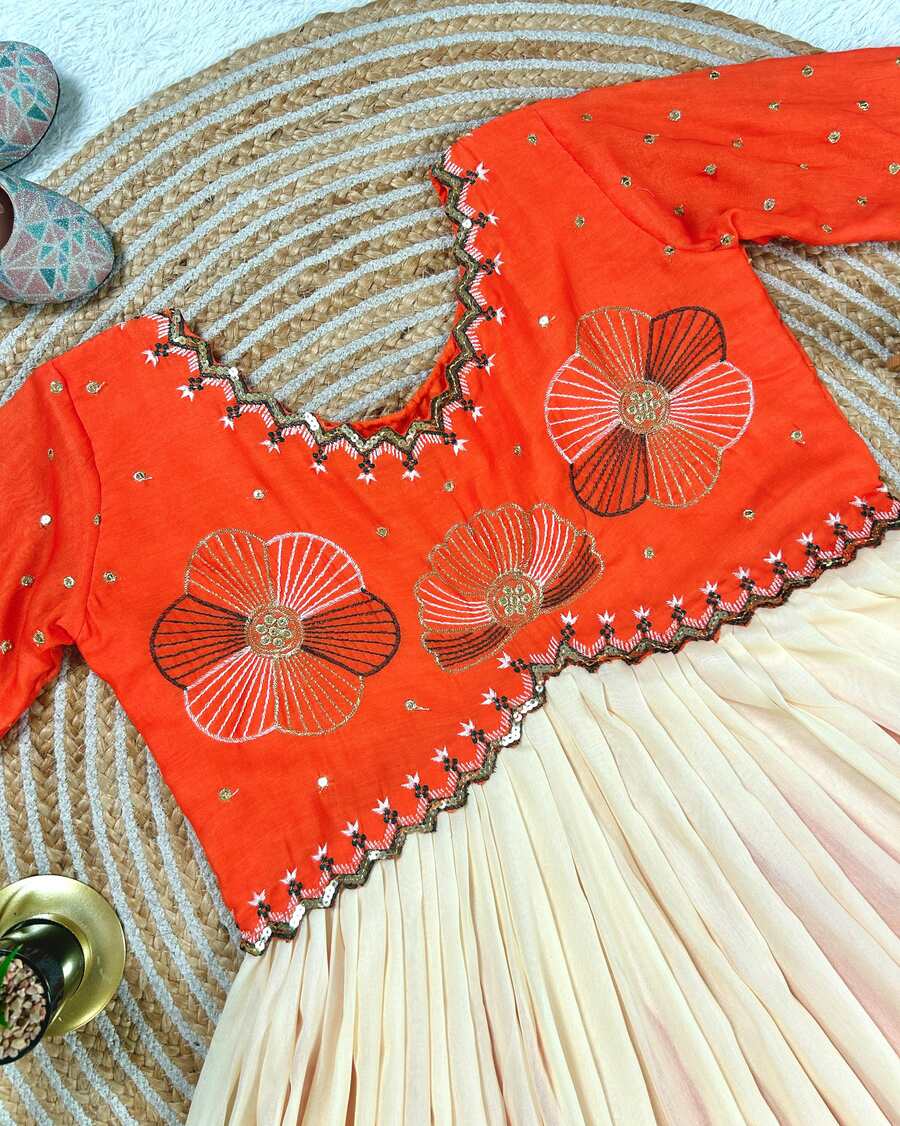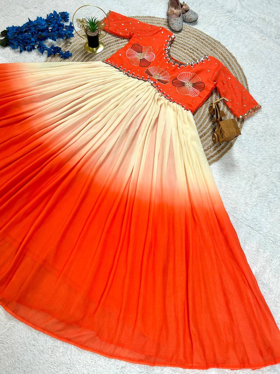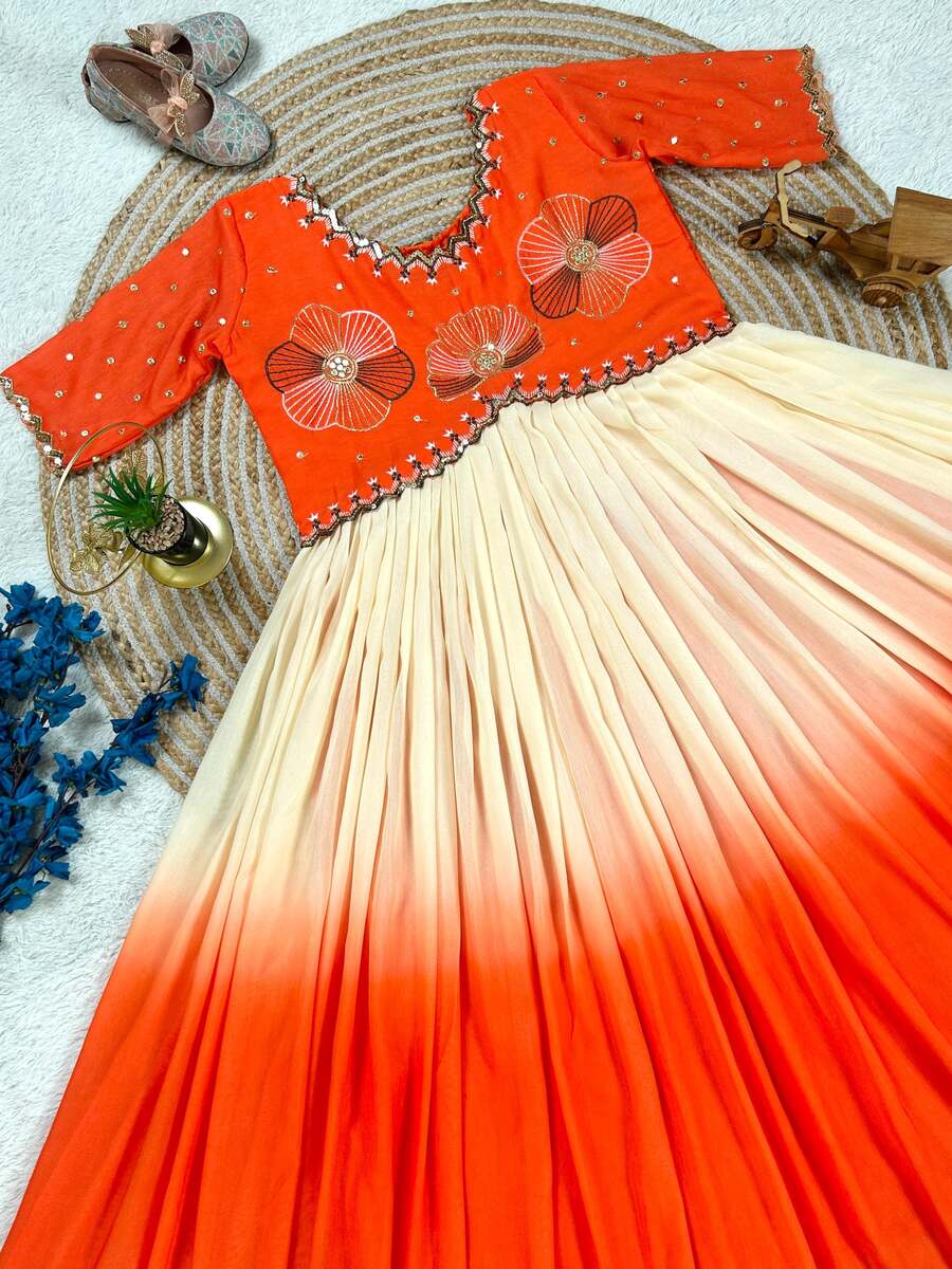 DESIGNER MUL MUL COTTON EMBROIDERY THREAD WORK GOWN ORANGE