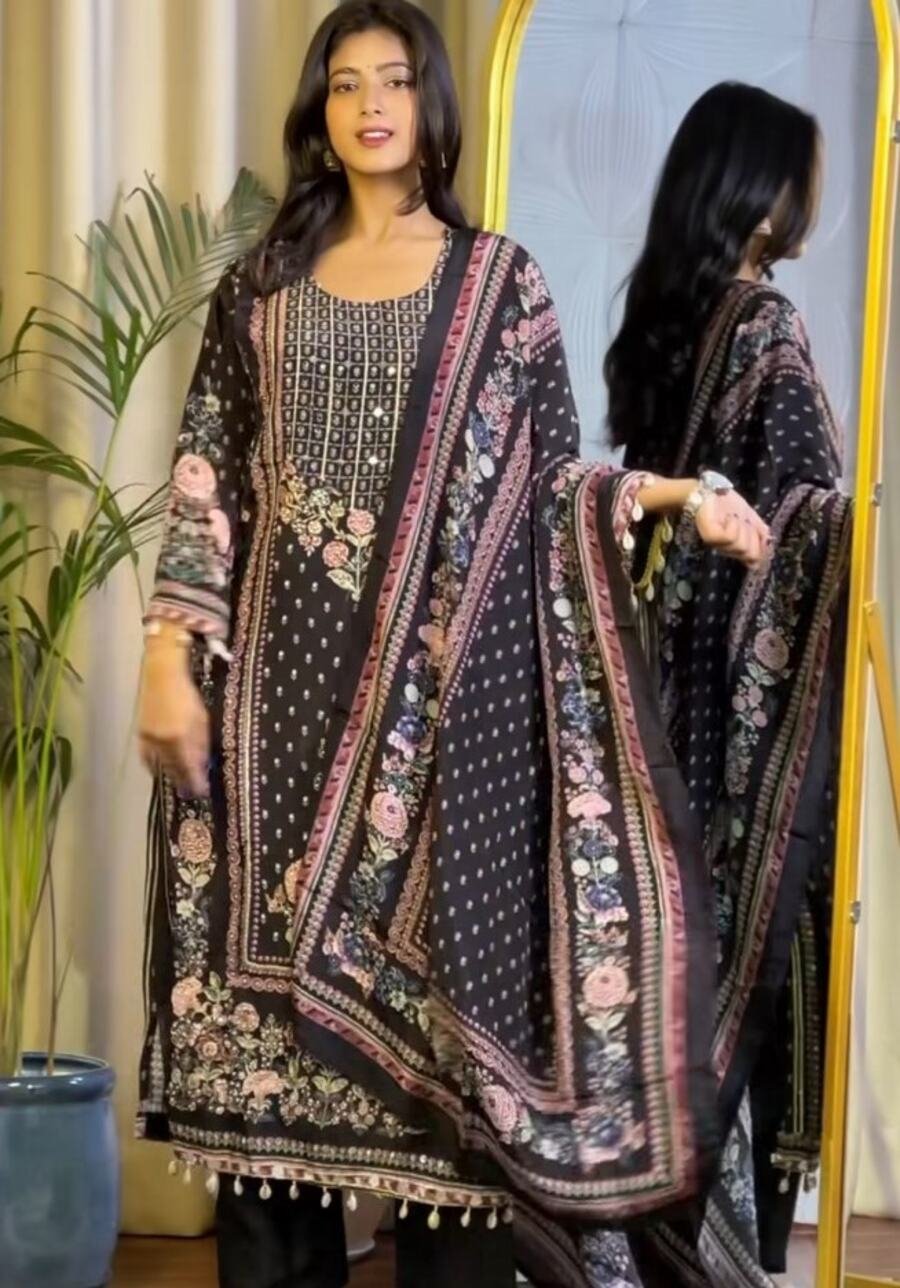 WORK : DIGITAL PRINT WITH HEAVY MIRROR WORK WITH FANCY LATKAN