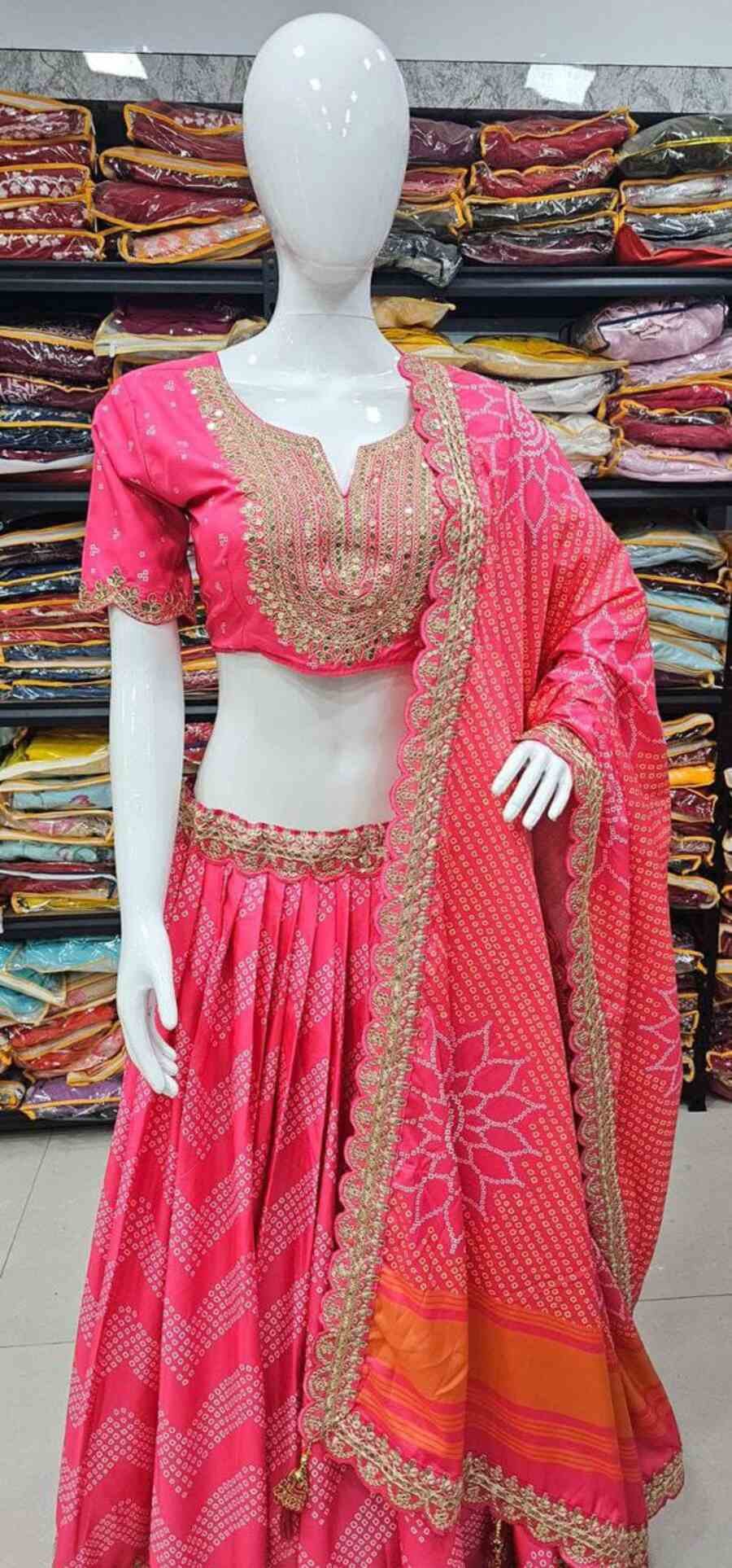 DESIGNER MUSLIN SILK DIGITAL PRINT WITH EMBROIDERY WORK LEHENGA CHOLI WITH DUPATTA PINK