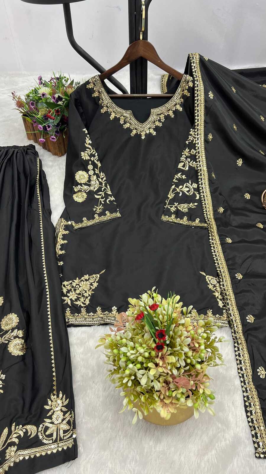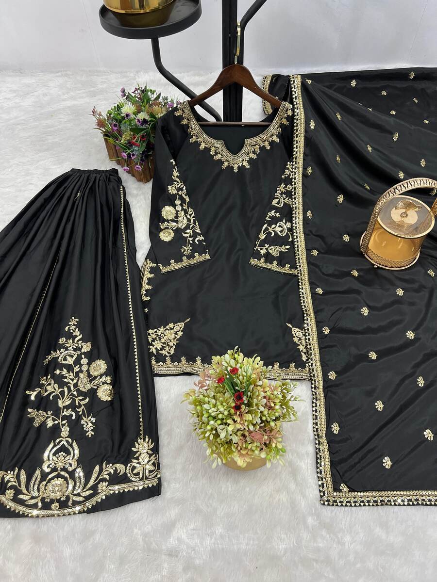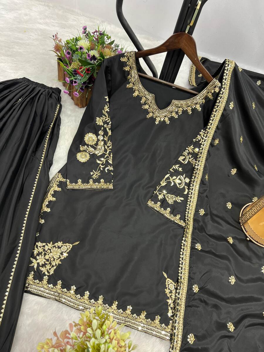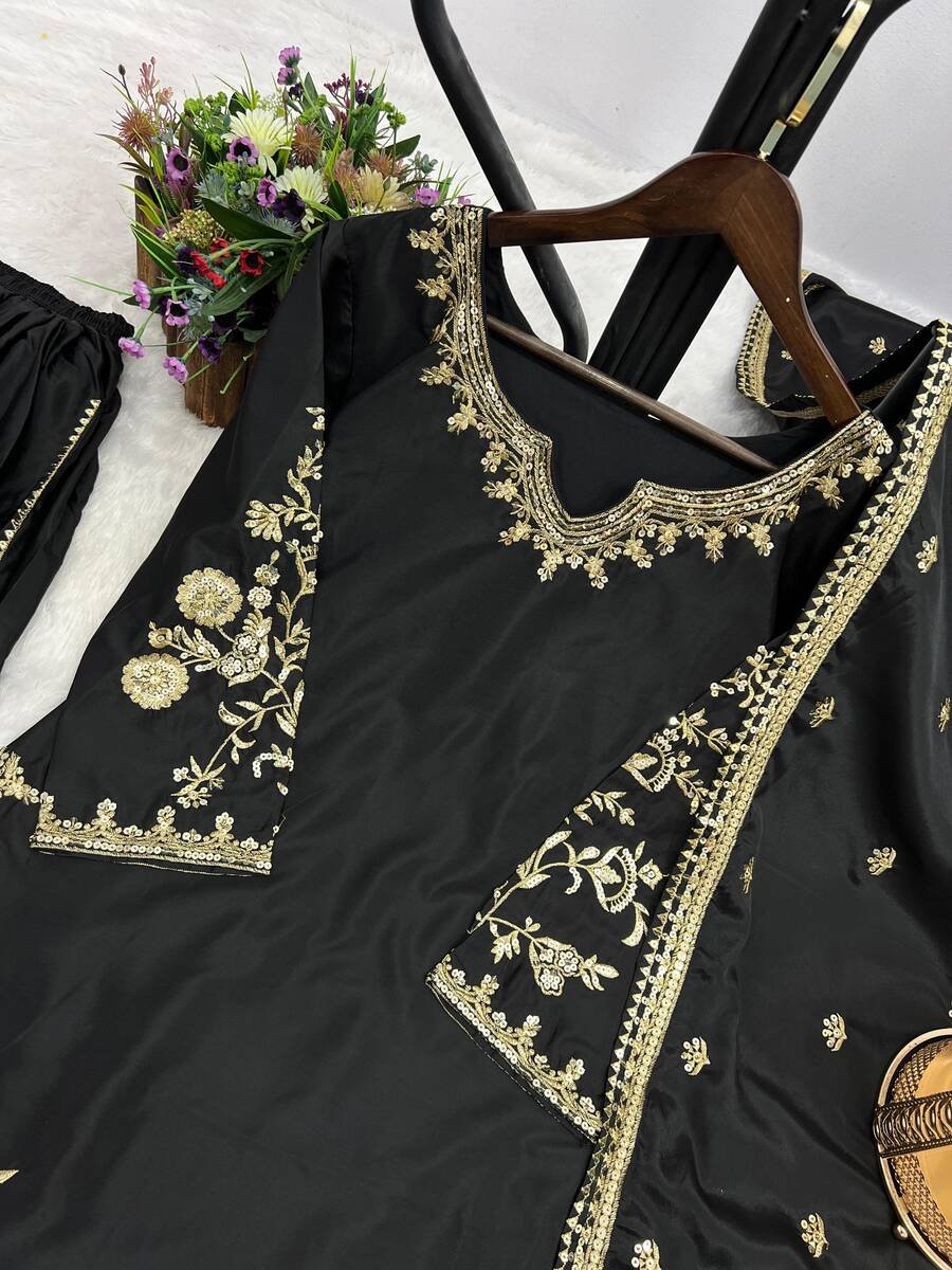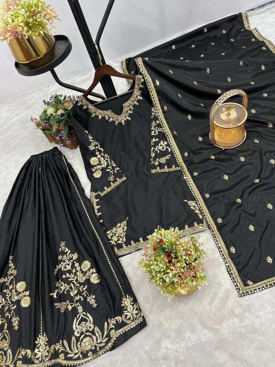 DESIGNER NATURAL CREPE EMBROIDERY SEQUENCE WORK TOP PALAZZO WITH DUPATTA BLACK