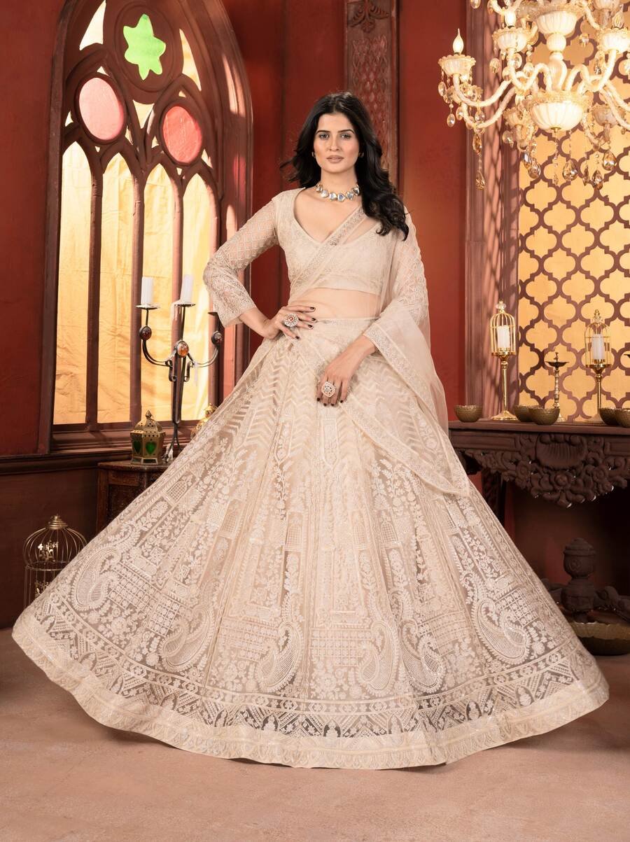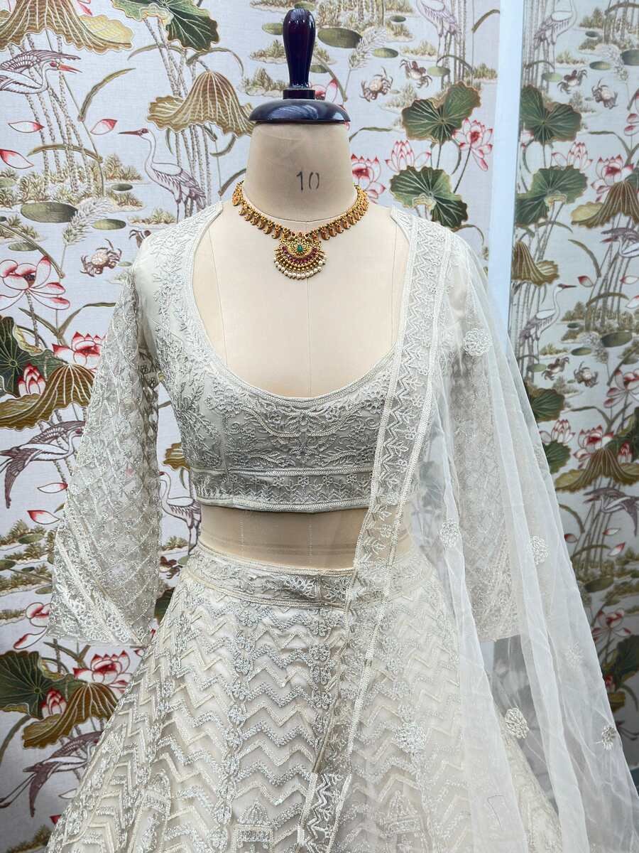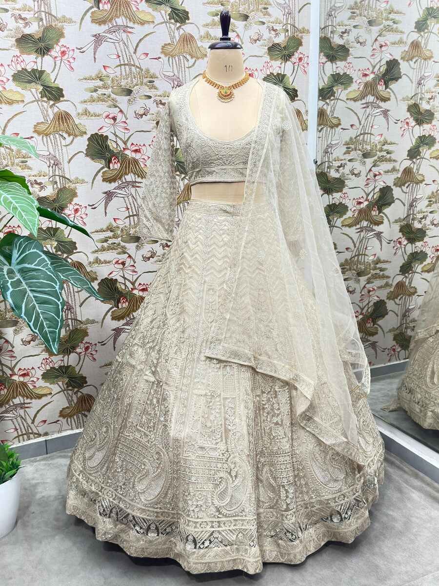 DESIGNER NET EMBROIDERY SEQUENCE DESIGN WORK LEHENGA CHOLI WITH DUPATTA OFF WHITE