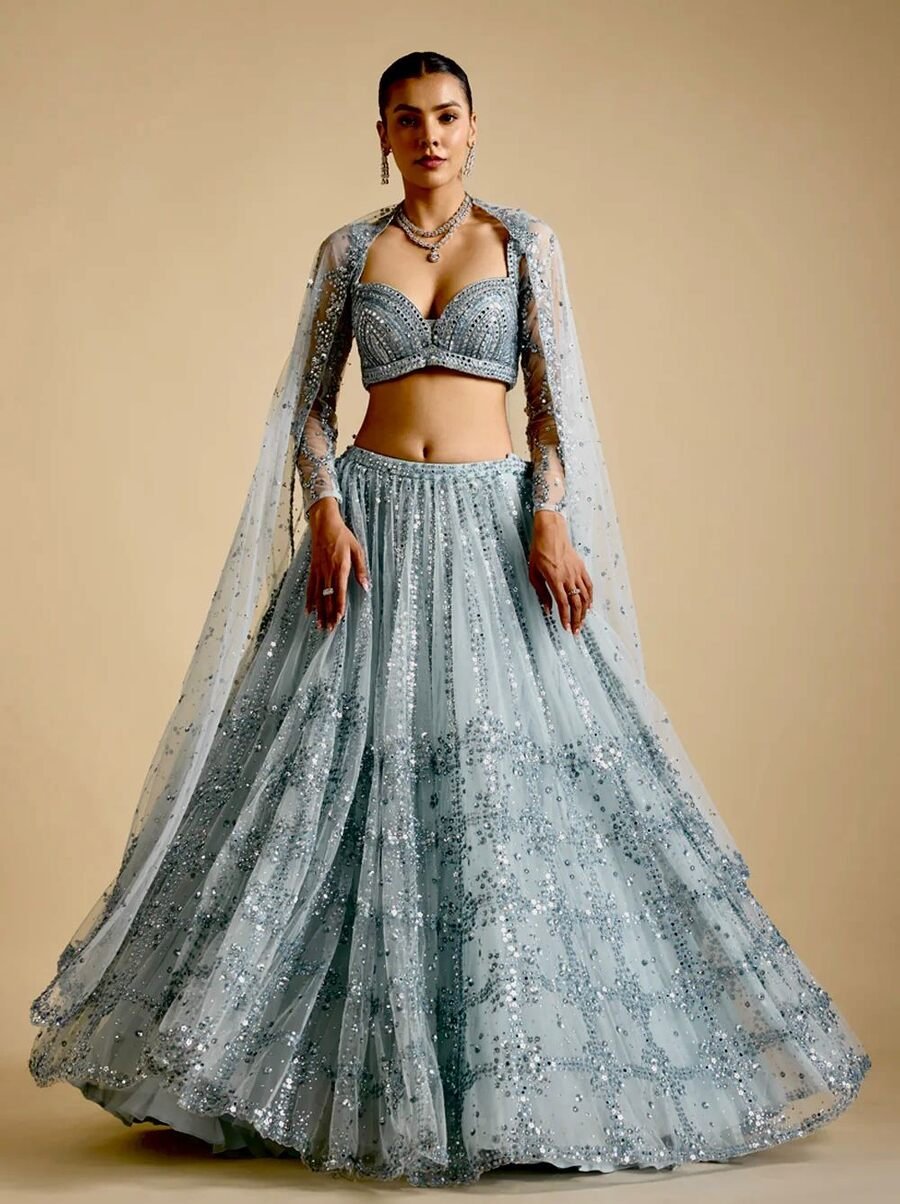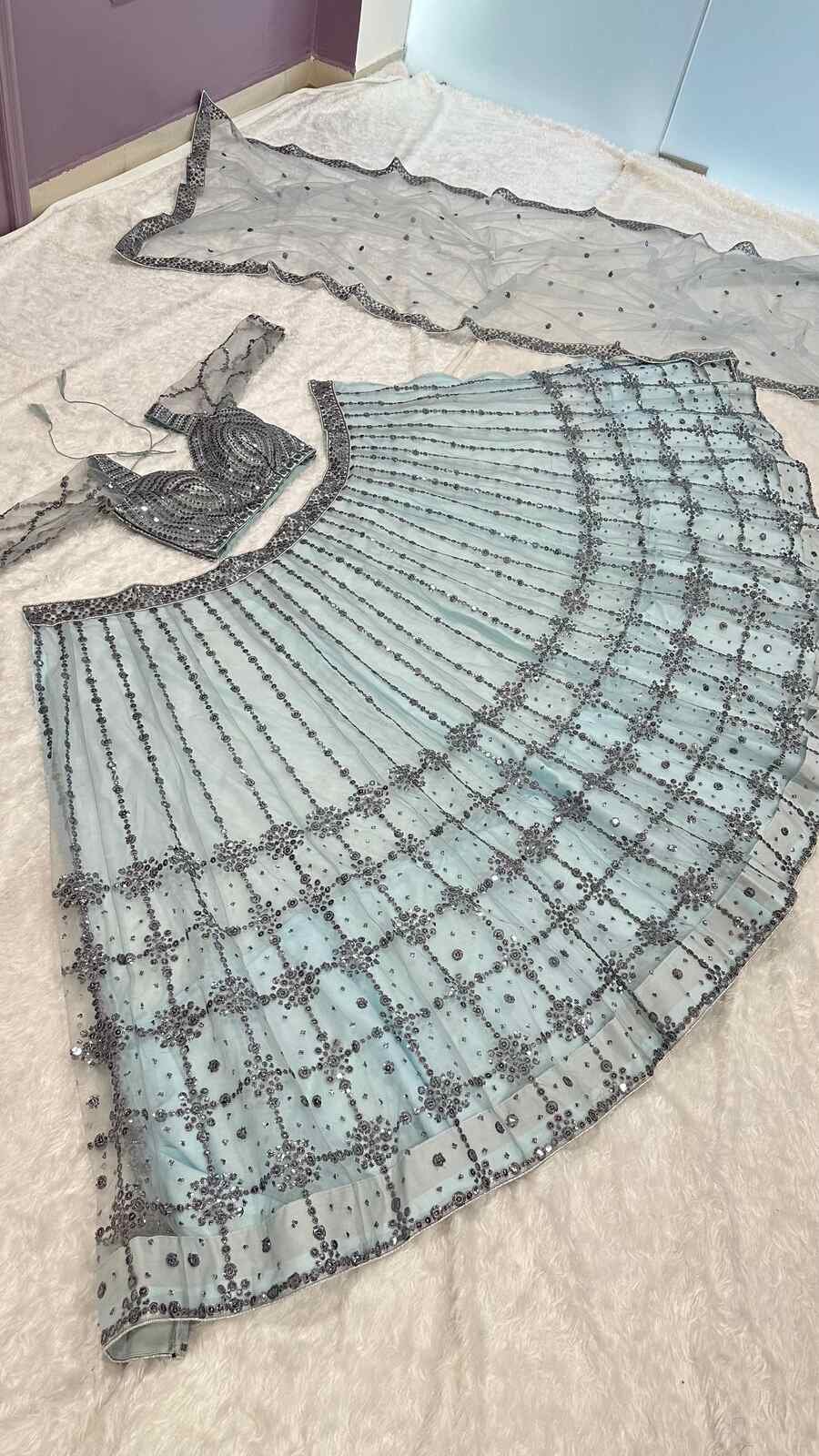 DESIGNER NET SEQUENCE WORK LEHENGA CHOLI WITH DUPATTA SKY