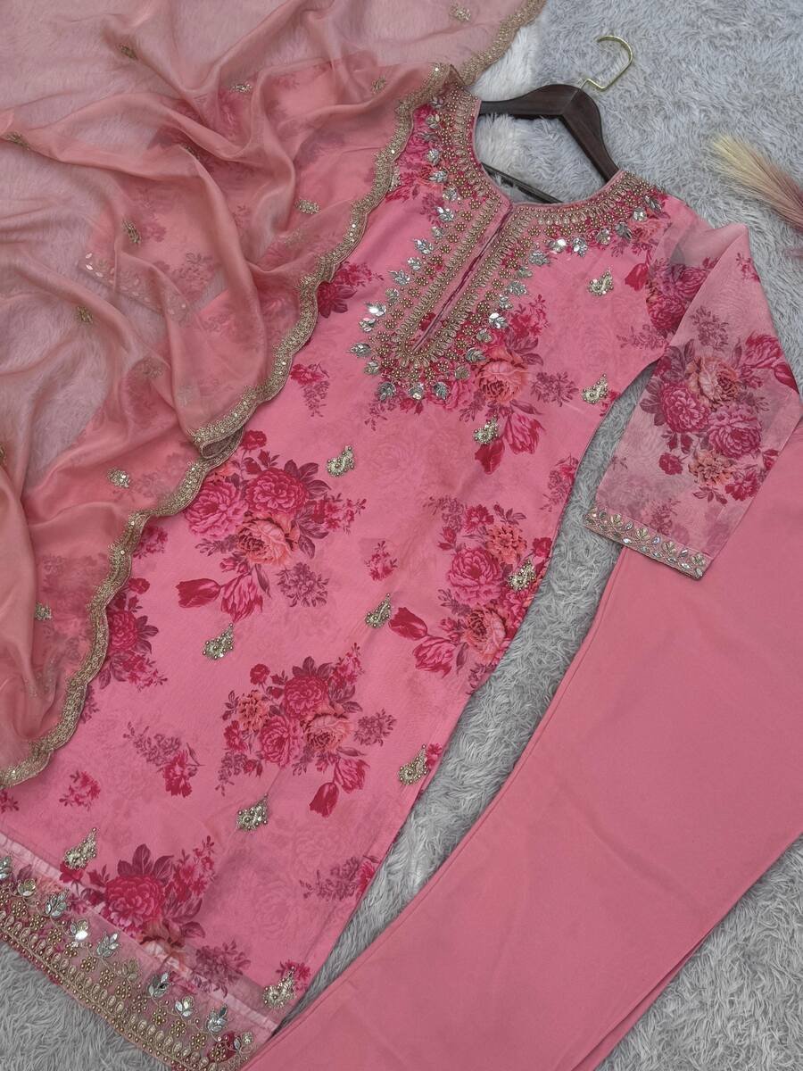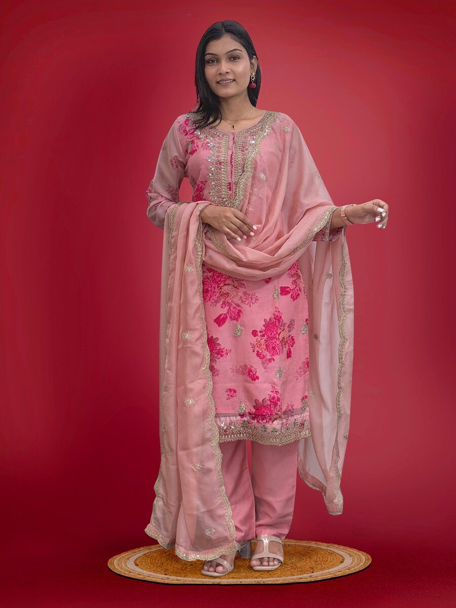 DESIGNER ORGANZA DIGITAL PRINTED EMBROIDERY CODING SEQUENCE WORK TOP BOTTOM WITH DUPATTA BABY PINK