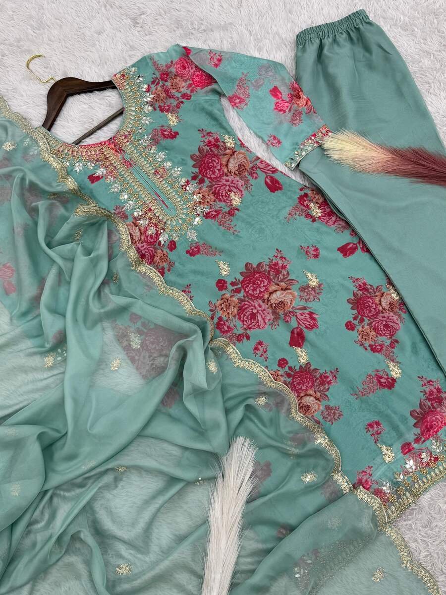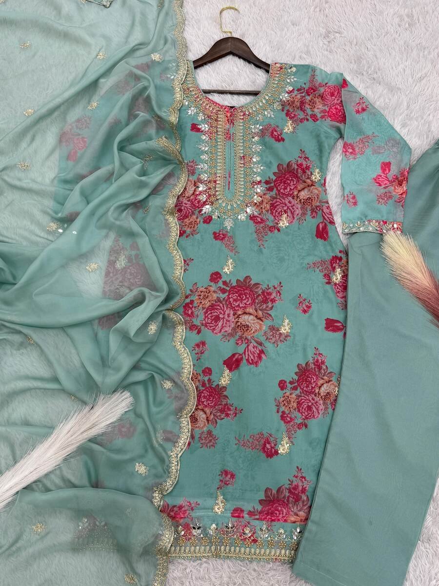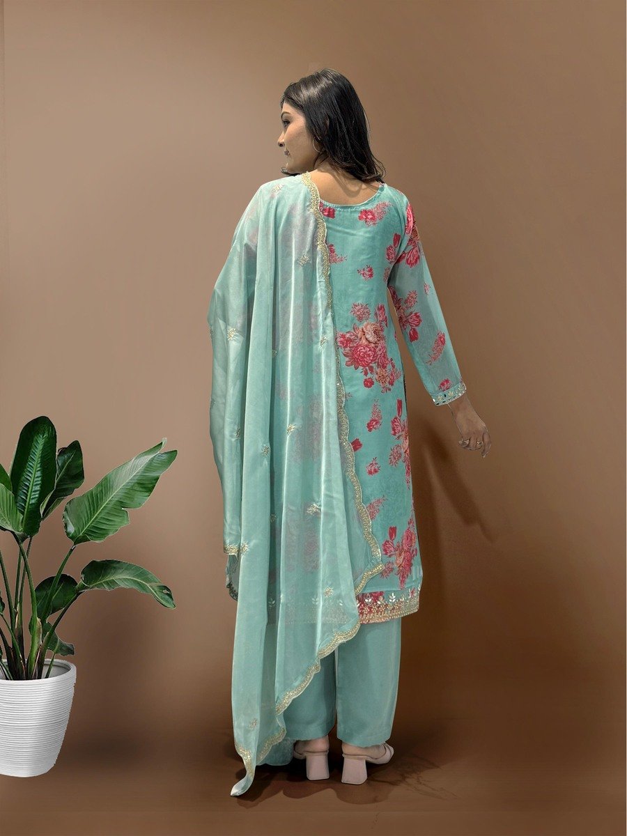 TOP WORK :- EMBROIDERY CODING DORI-SEQUENCE WITH HEAVY STONE MIRROR HAND WORK AND DIGITAL PRINTED WITH FULL SLEEVE