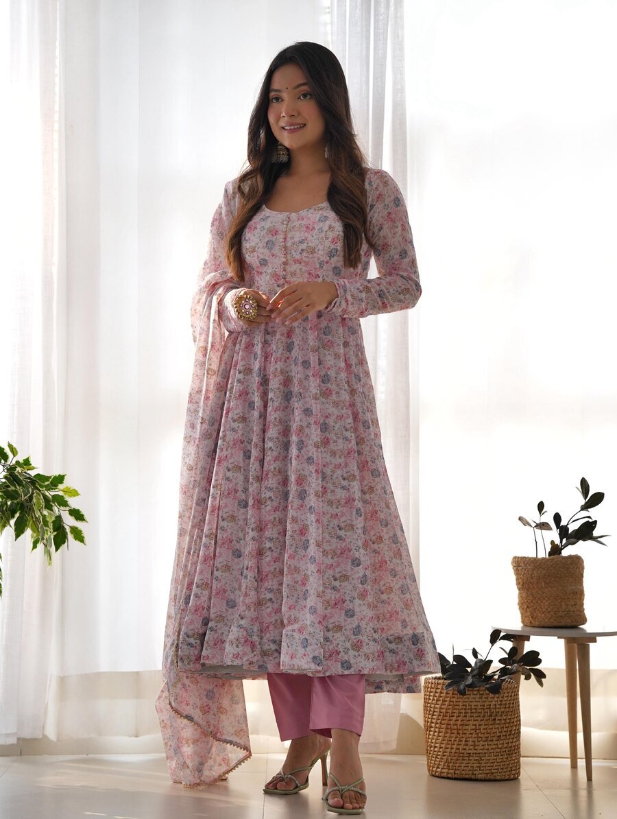 ANARKALI FABRIC : HEAVY ORGANZA CHIFFON FLORAL PRINT