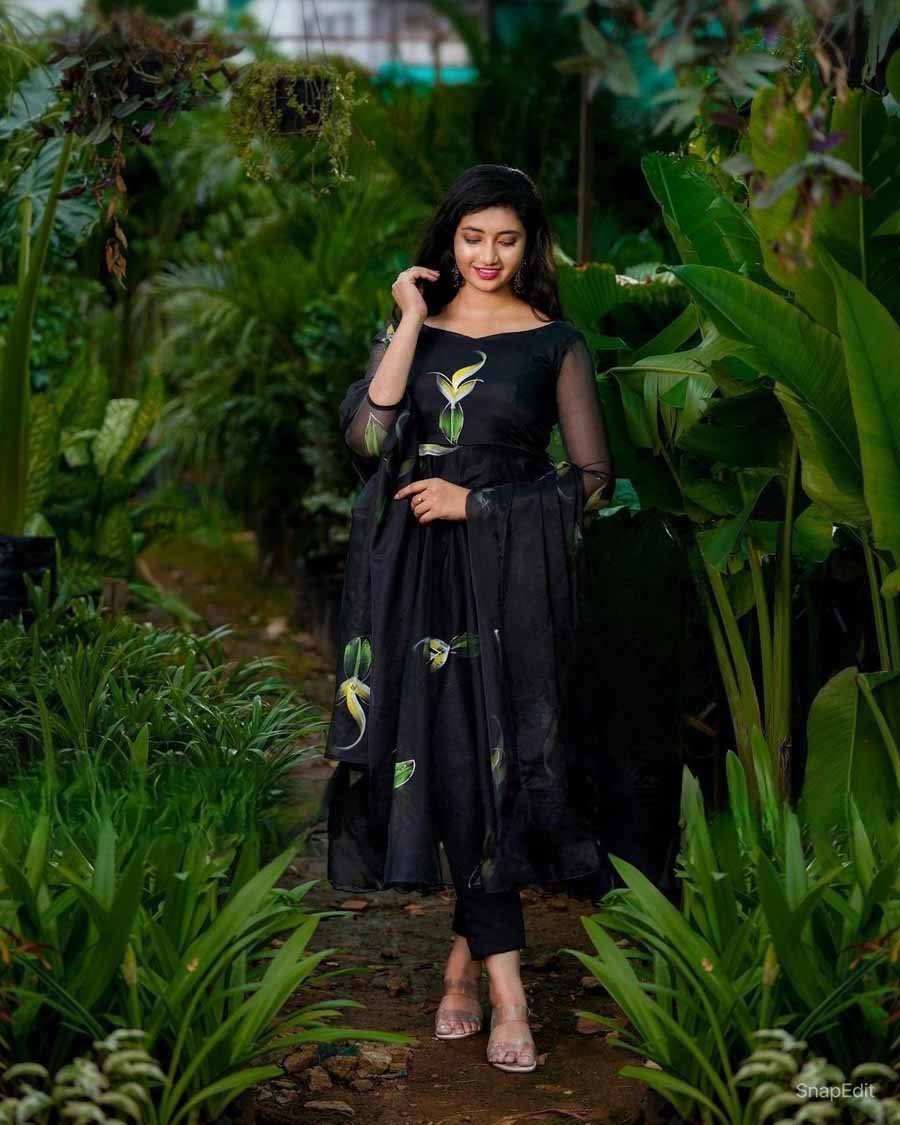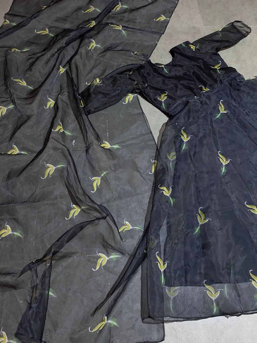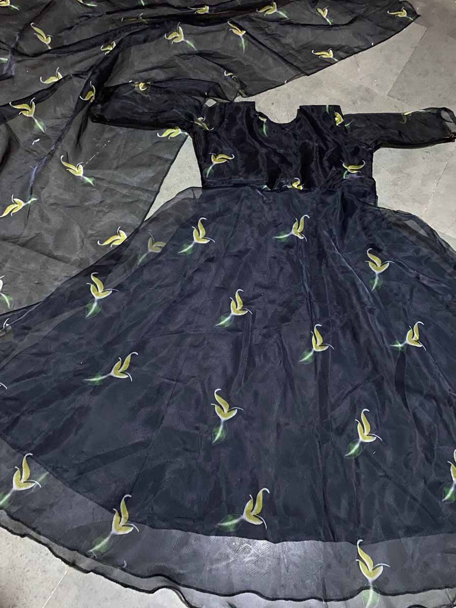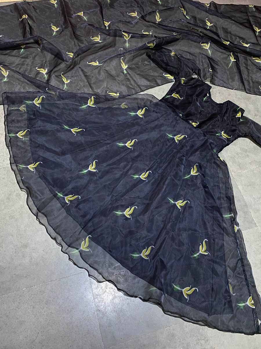 DESIGNER ORGANZA SILK DIGITAL PRINT WORK GOWN WITH DUPATTA BLACK