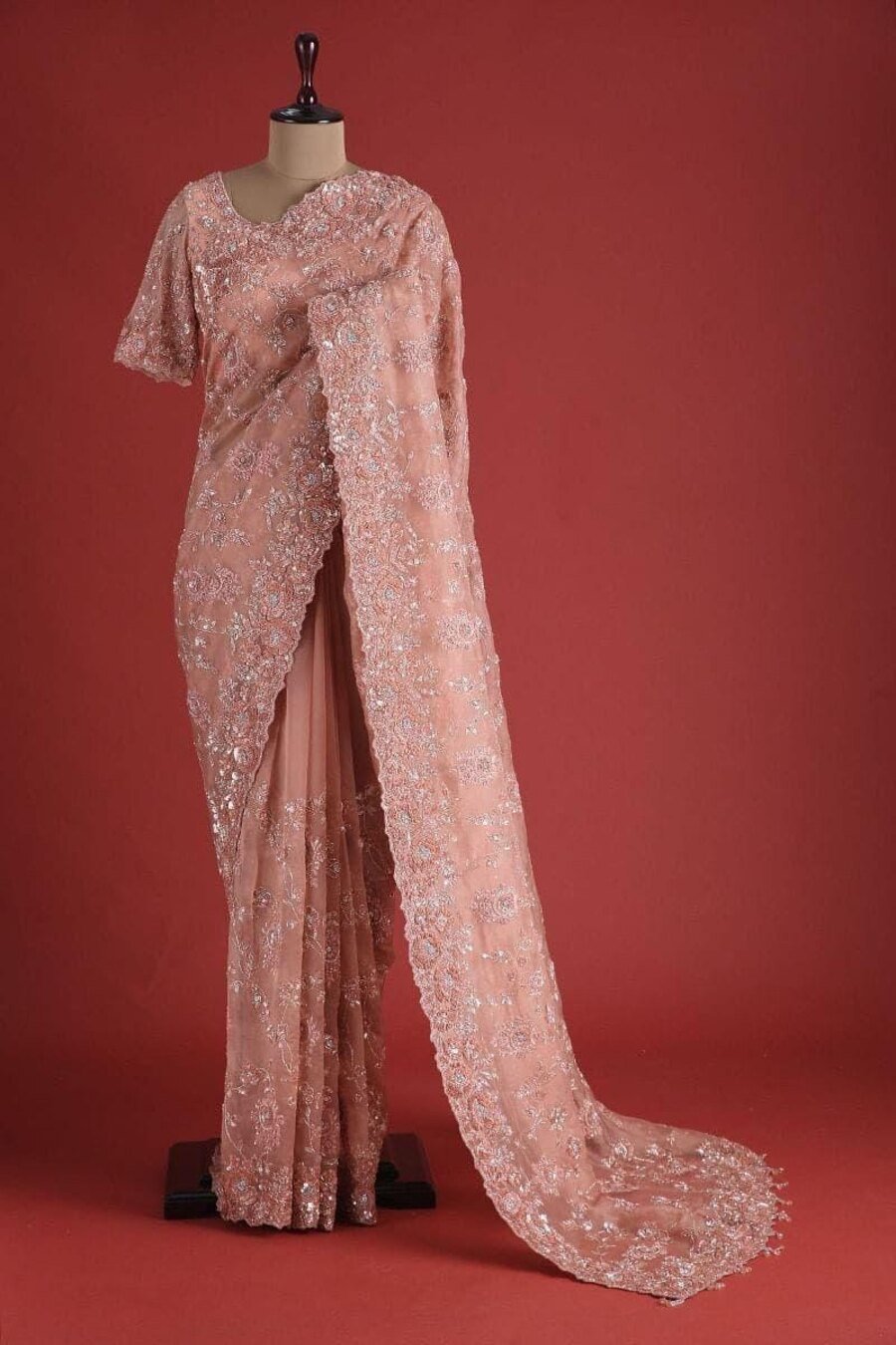 WORK : EMBRODERY THREAD, ZARI WITH 3 MM SEQUENCE WORK
