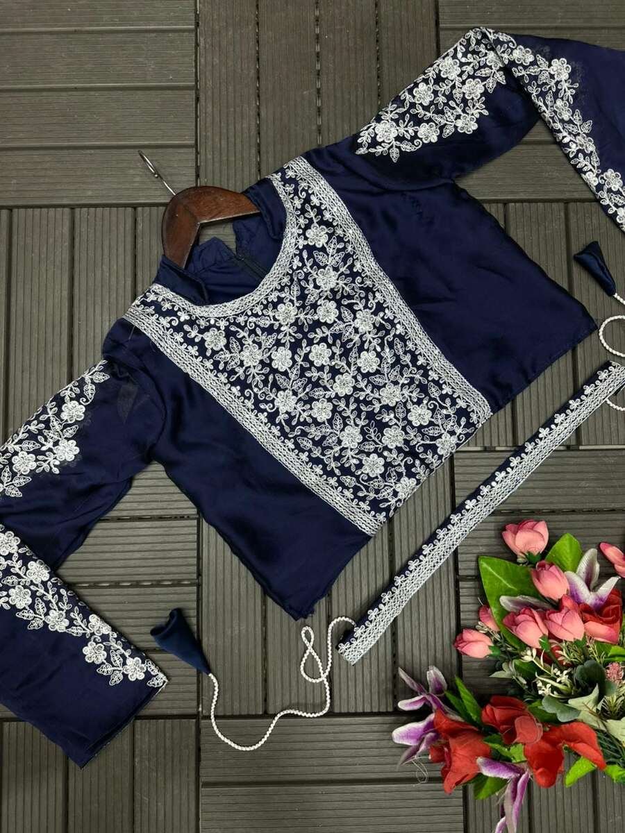 DESIGNER RANGOLI SILK EMBROIDERY CODING WORK READY TO WEAR SAREE WITH STITCHED BLOUSE NAVY BLUE
