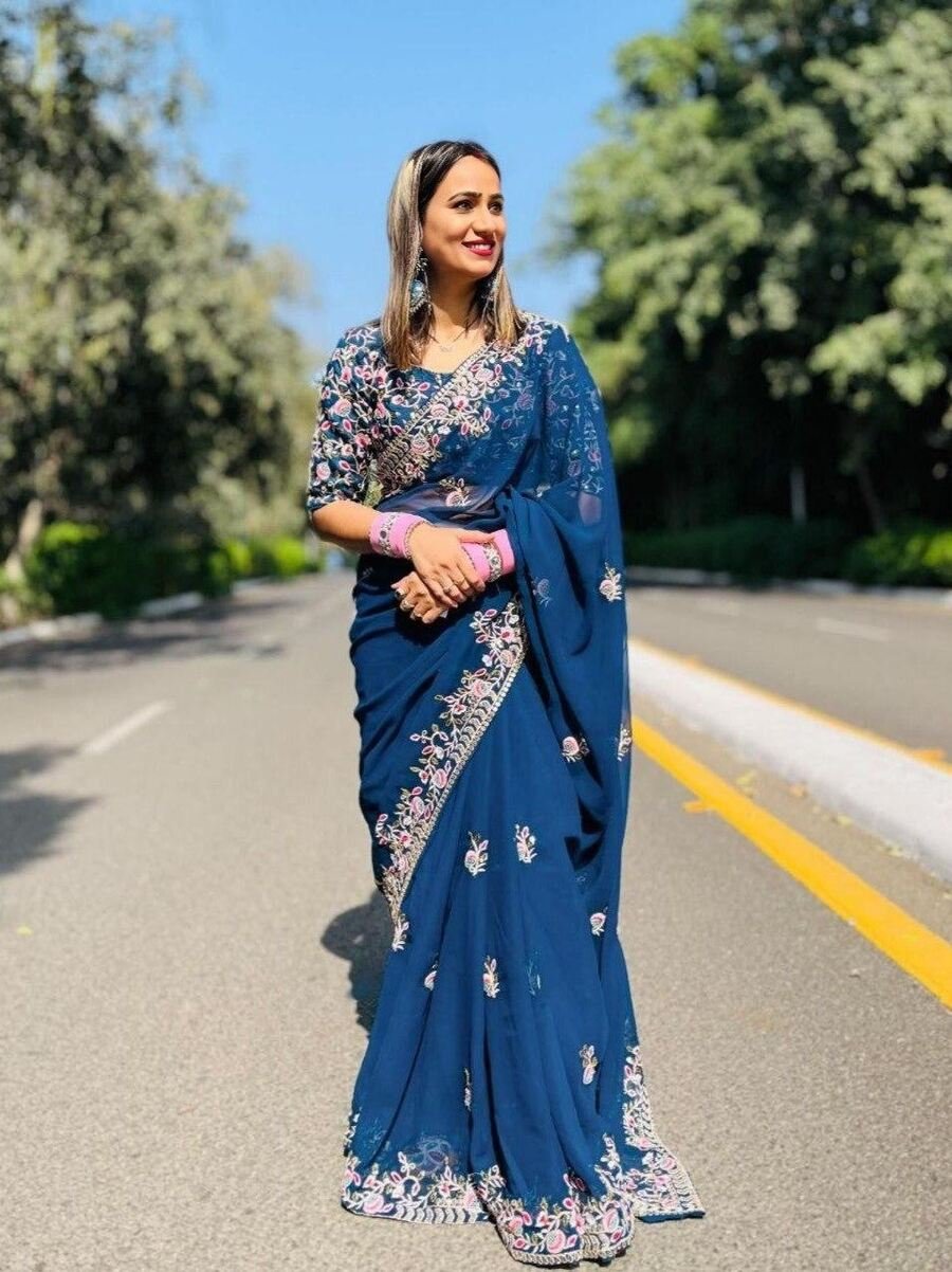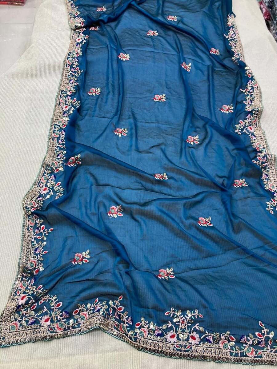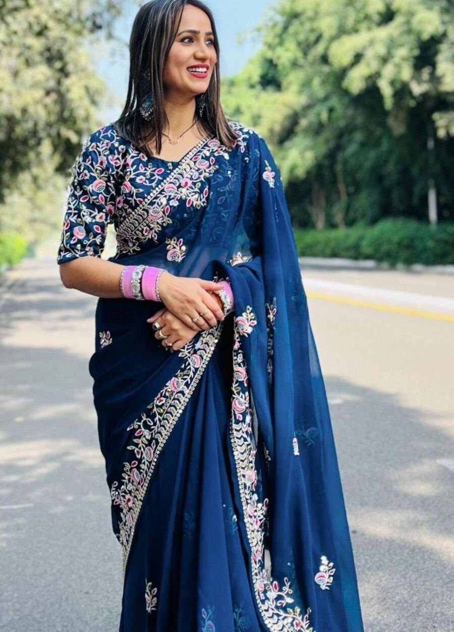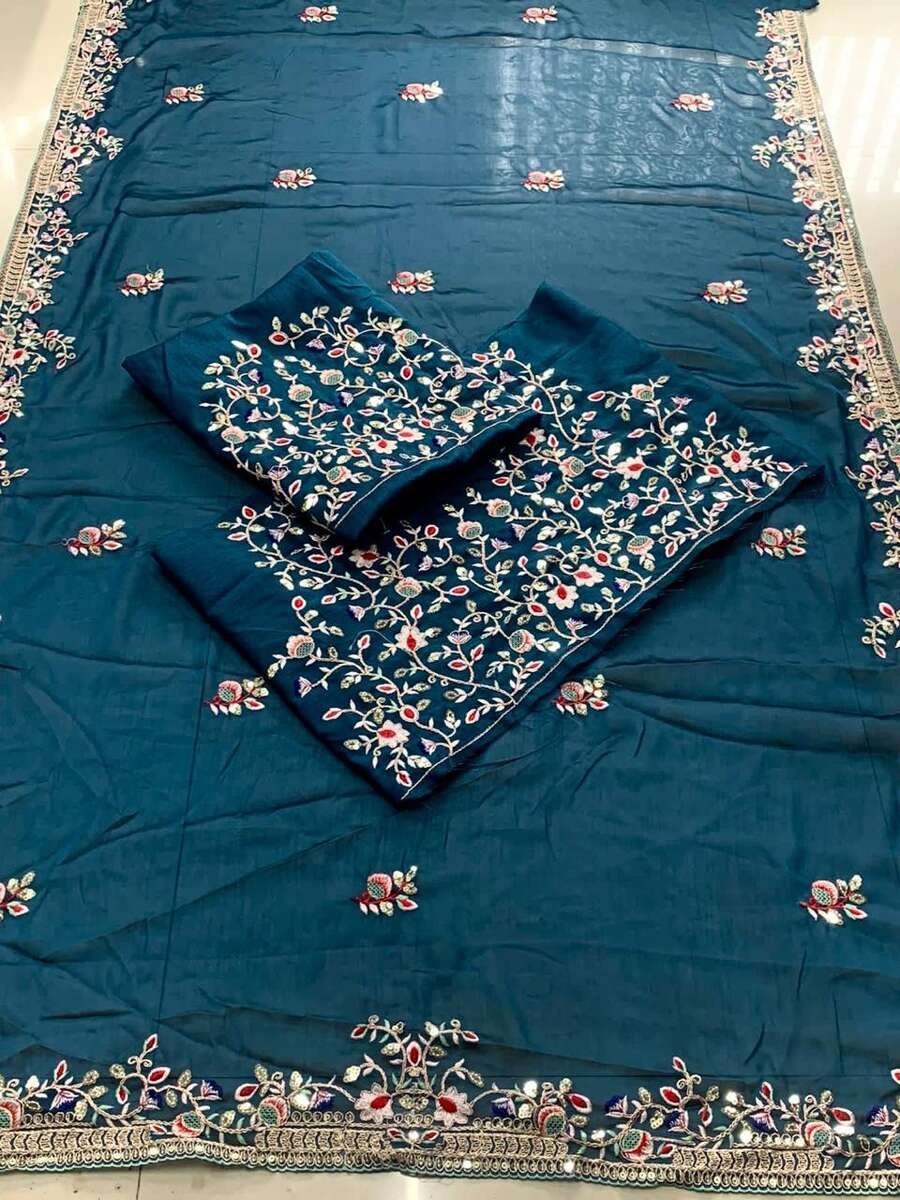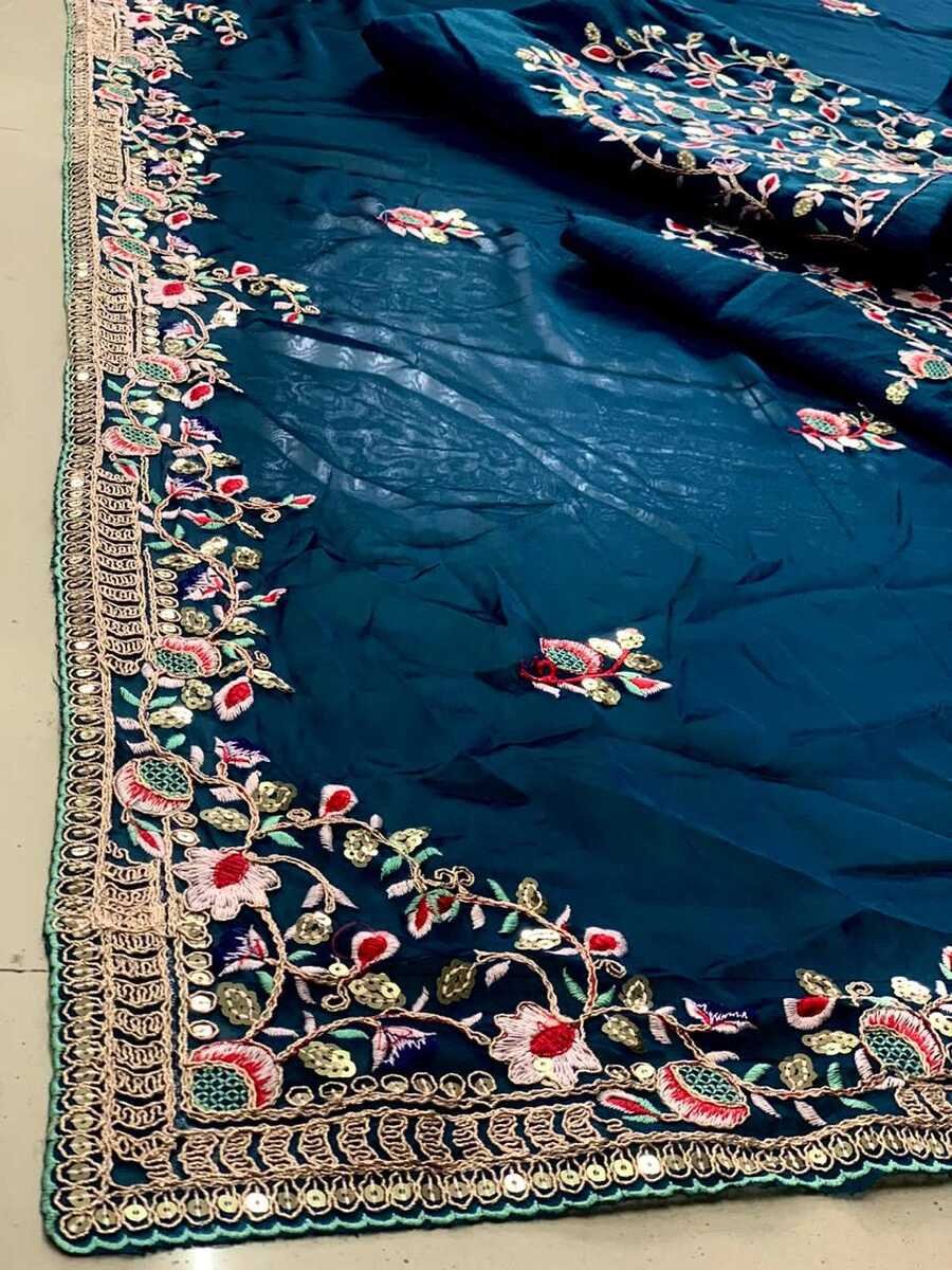 DESIGNER RANGOLI SILK EMBROIDERY WORK SAREE WITH UNSTITCHED BLOUSE BLUE