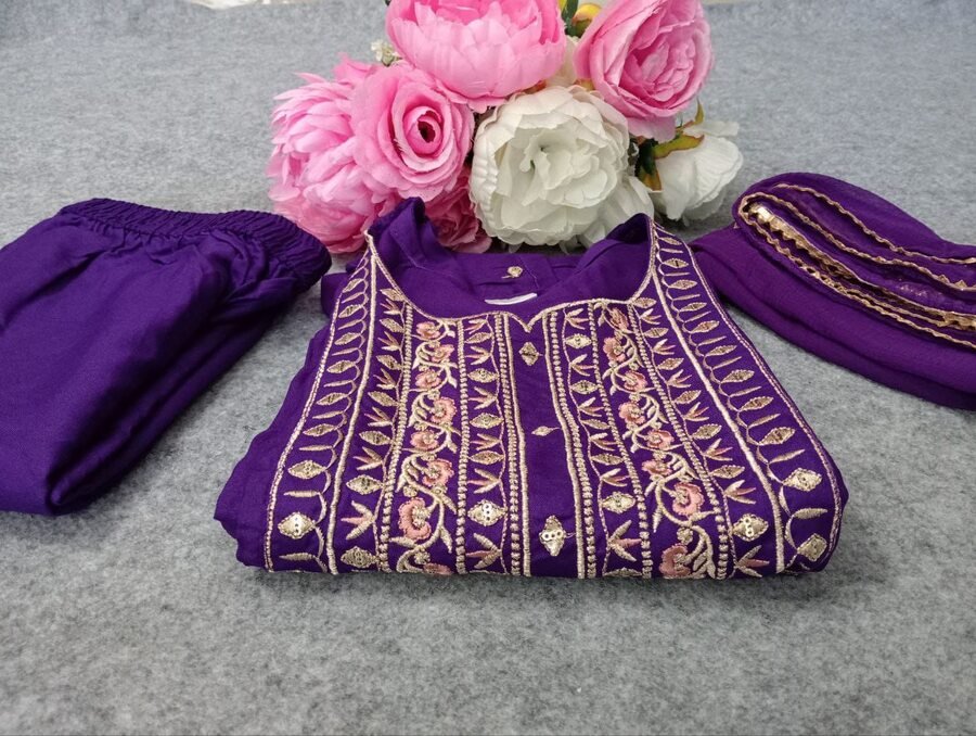 DESIGNER RAYON EMBROIDERY WORK TOP BOTTOM WITH DUPATTA PURPLE