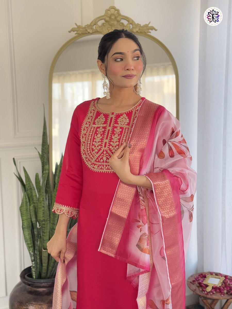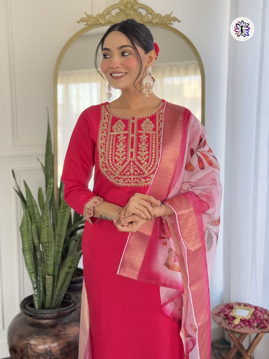 DESIGNER RAYON EMBROIDERY WORK TOP BOTTOM WITH DUPATTA RANI