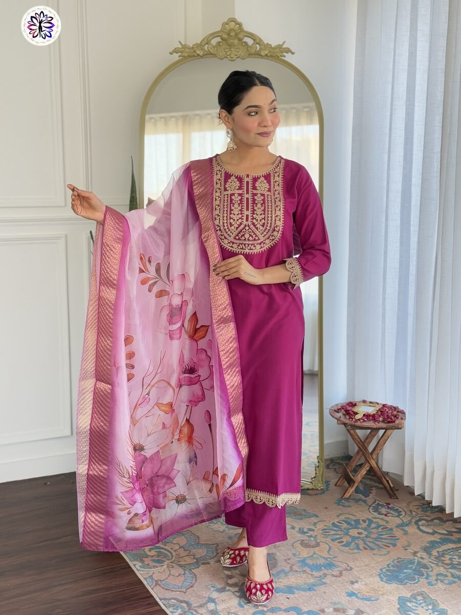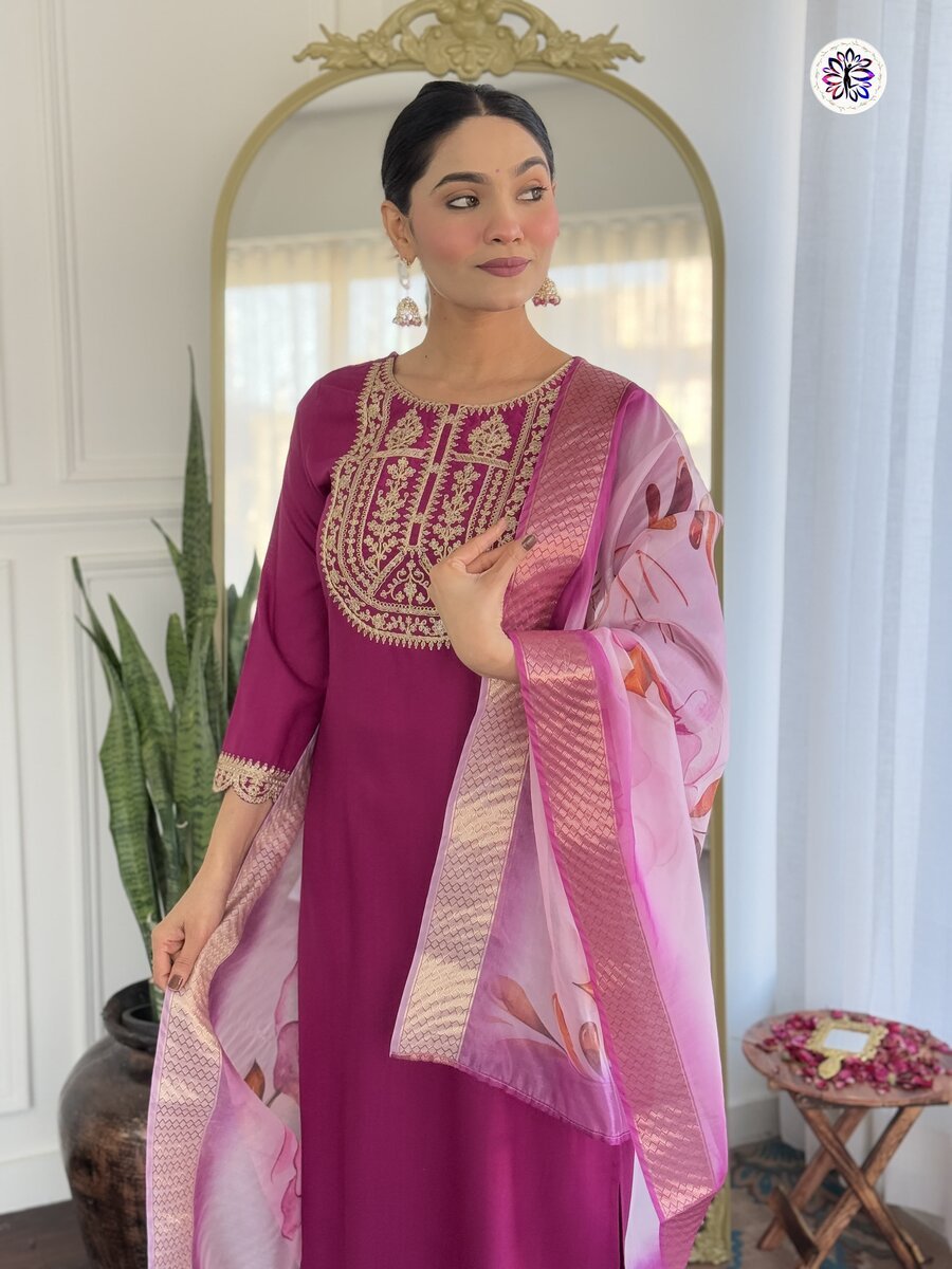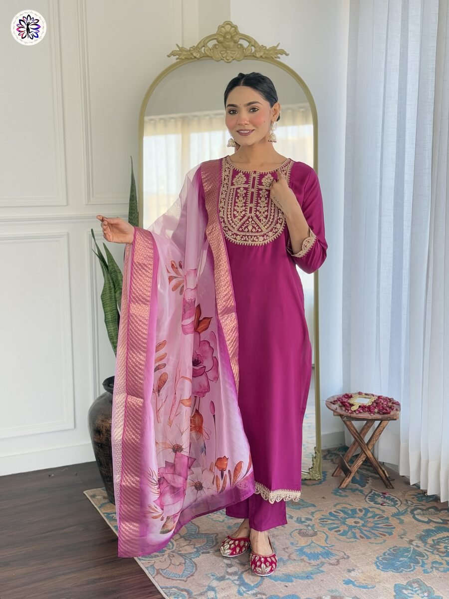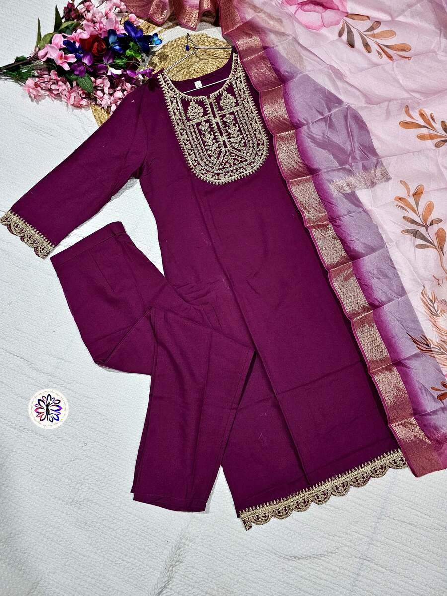 DESIGNER RAYON EMBROIDERY WORK TOP BOTTOM WITH DUPATTA WINE