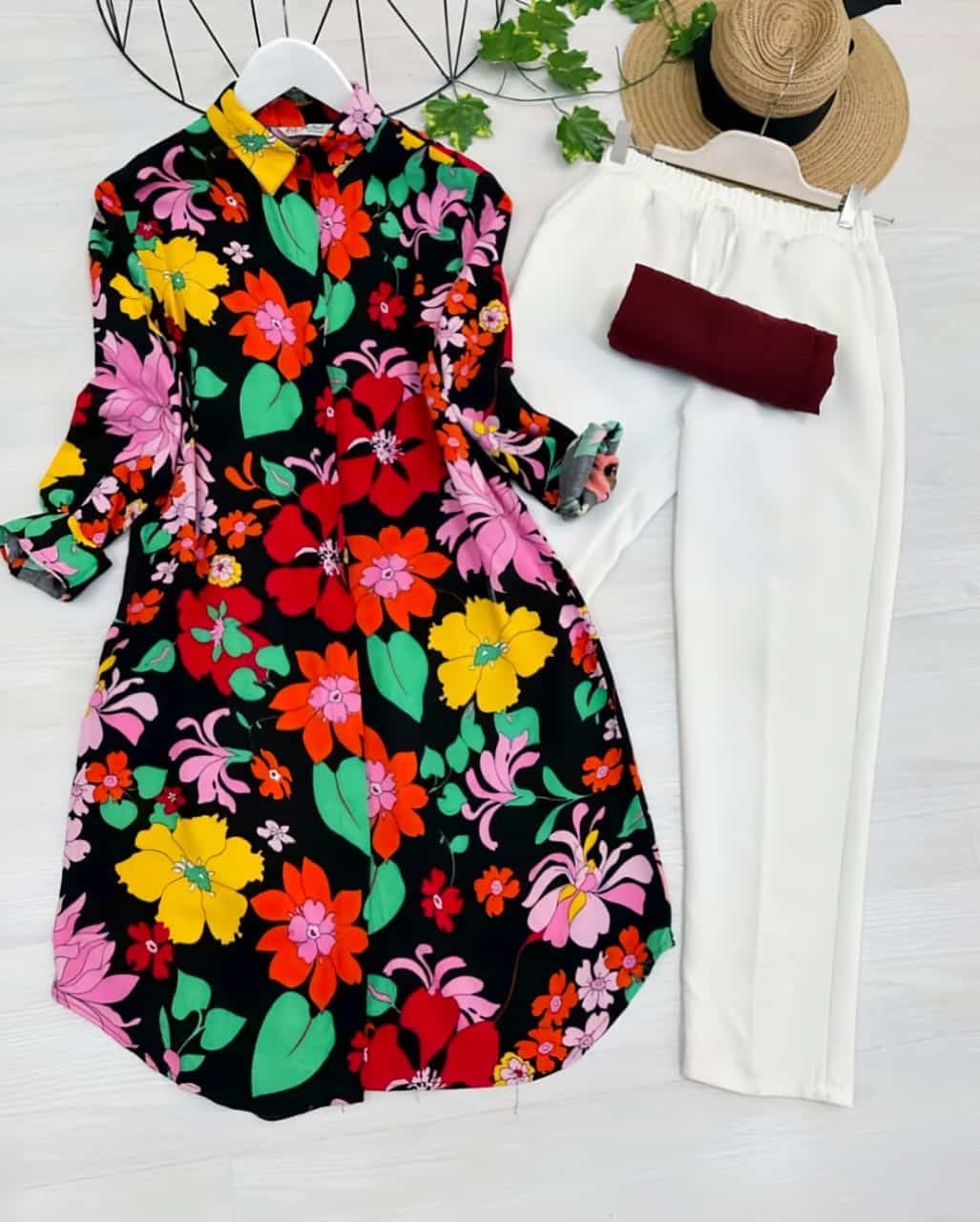 DESIGNER RAYON FLORAL PRINTED TOP WITH PALAZZO BLACK
