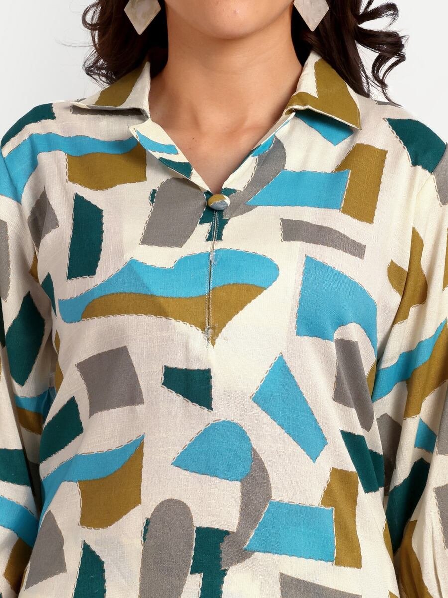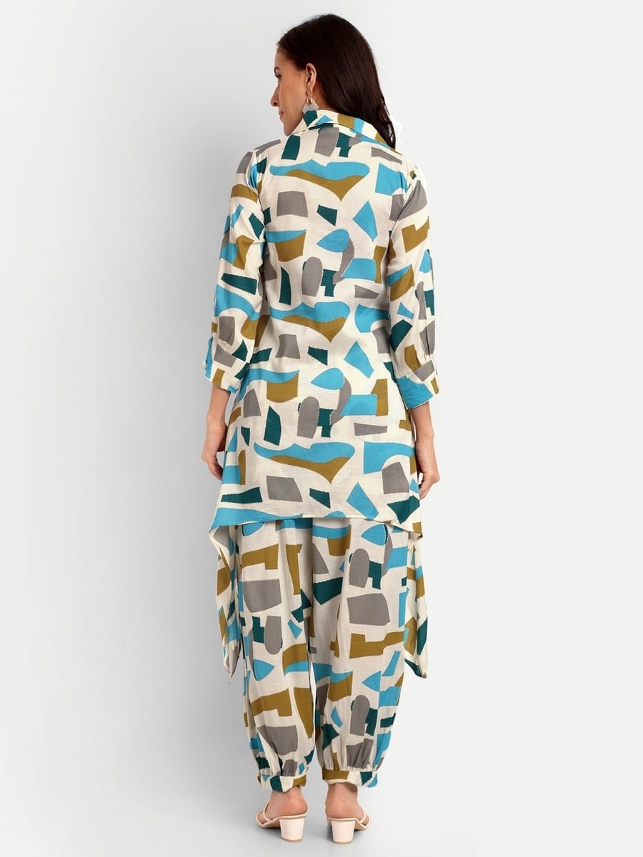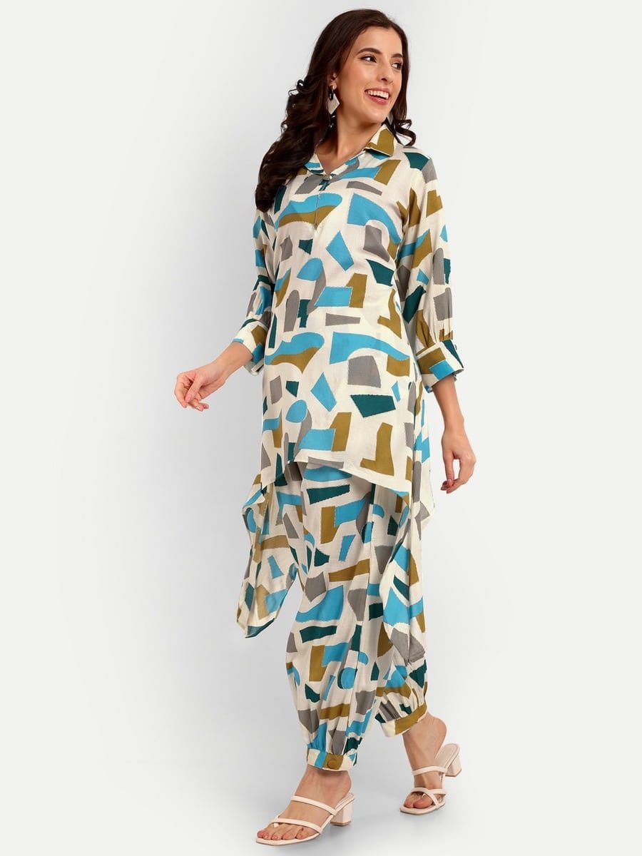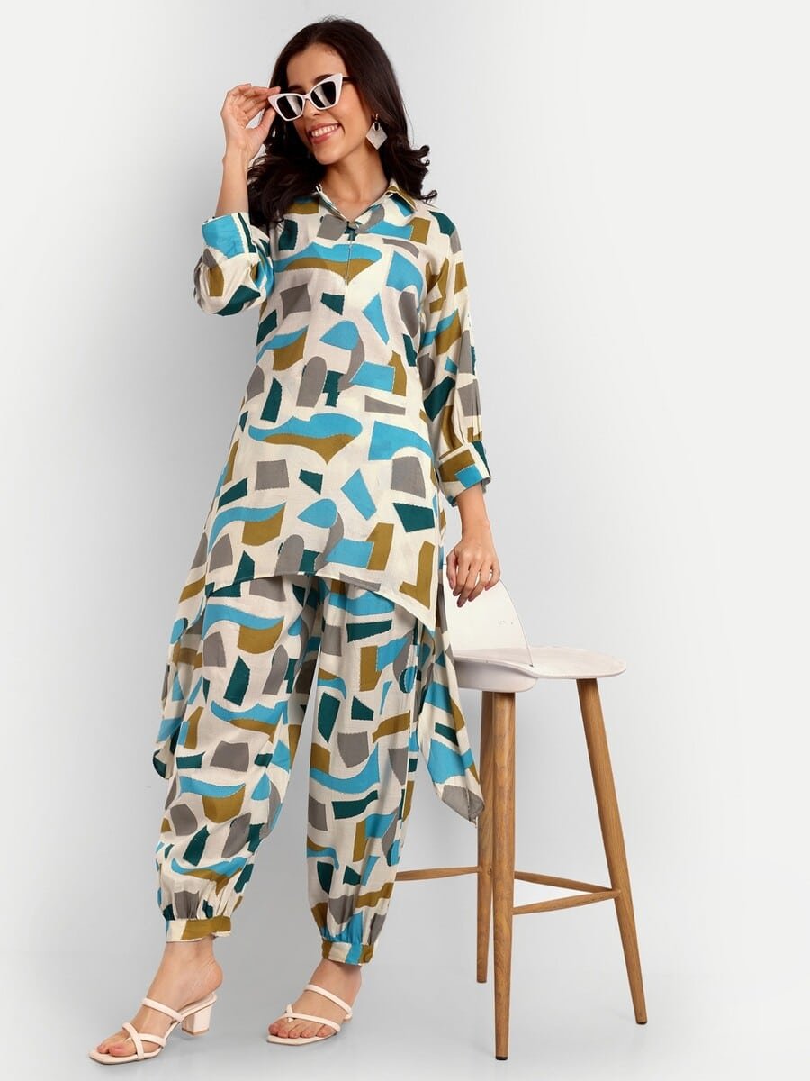 DESIGNER RAYON FOIL PRINT WORK CORD SET SKY