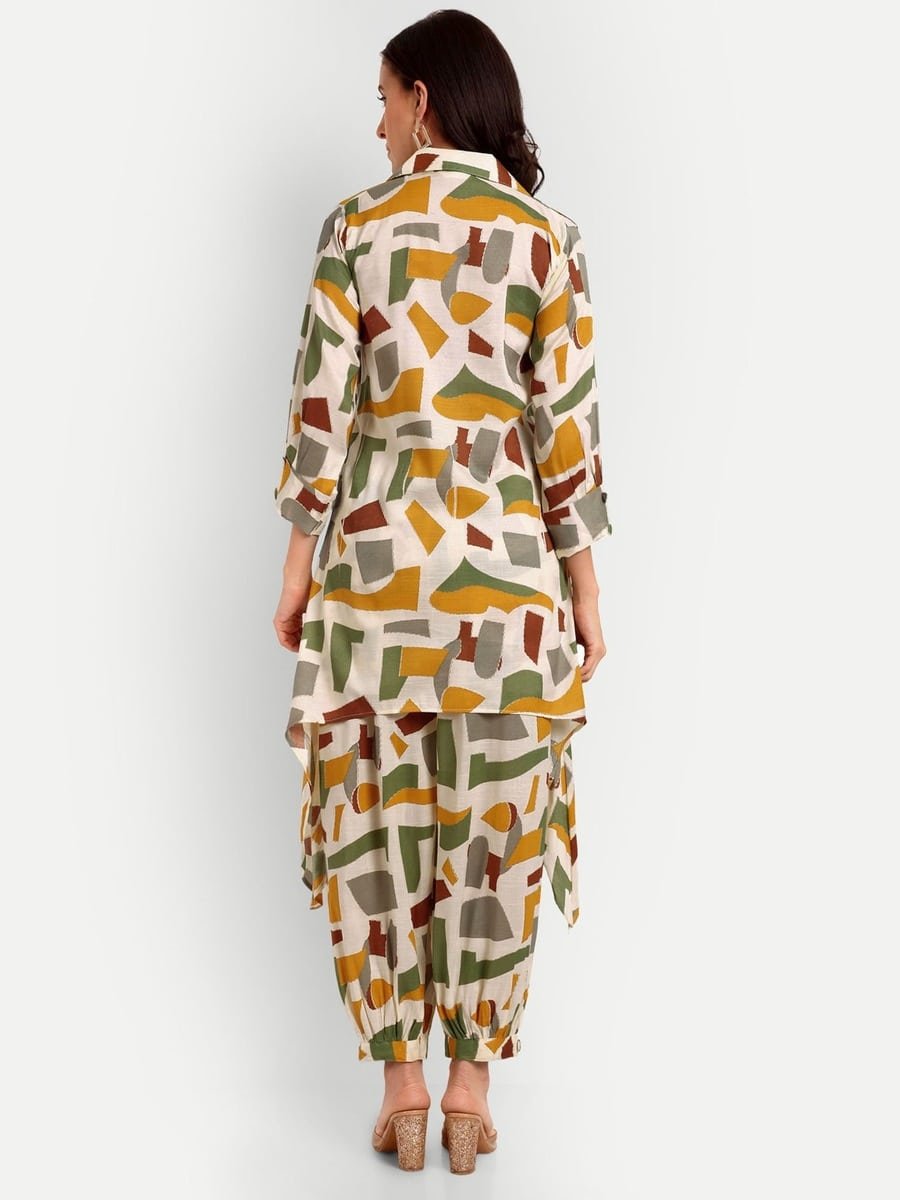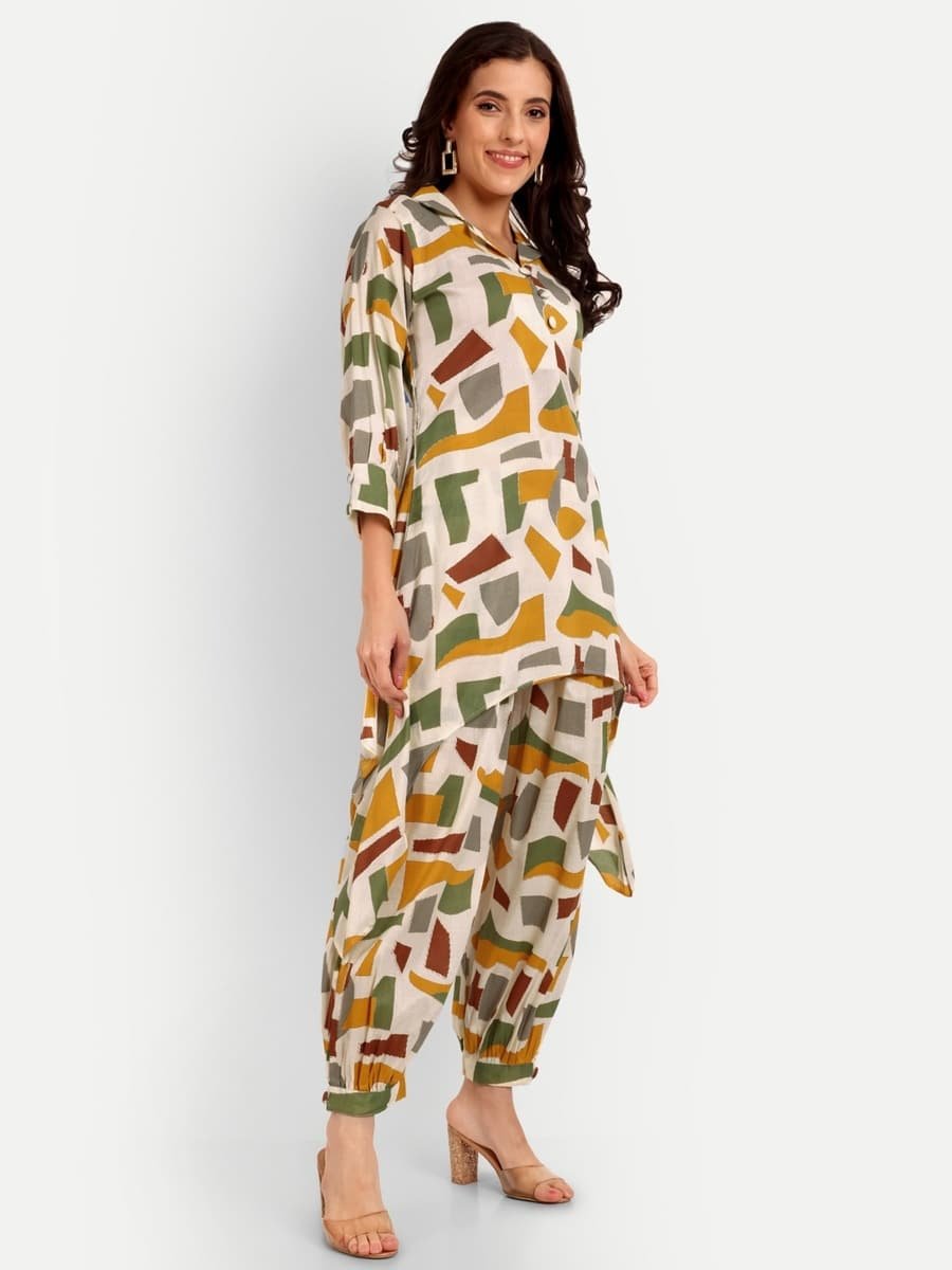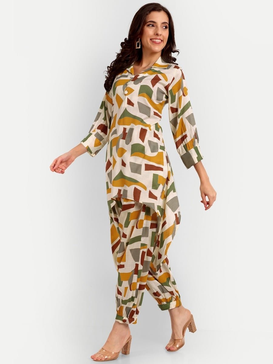 DESIGNER RAYON FOIL PRINT WORK CORD SET YELLOW