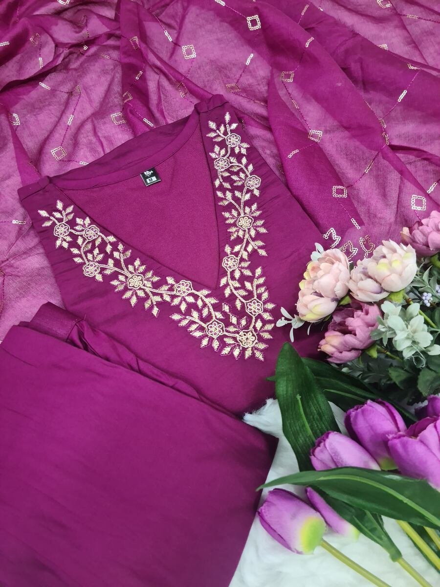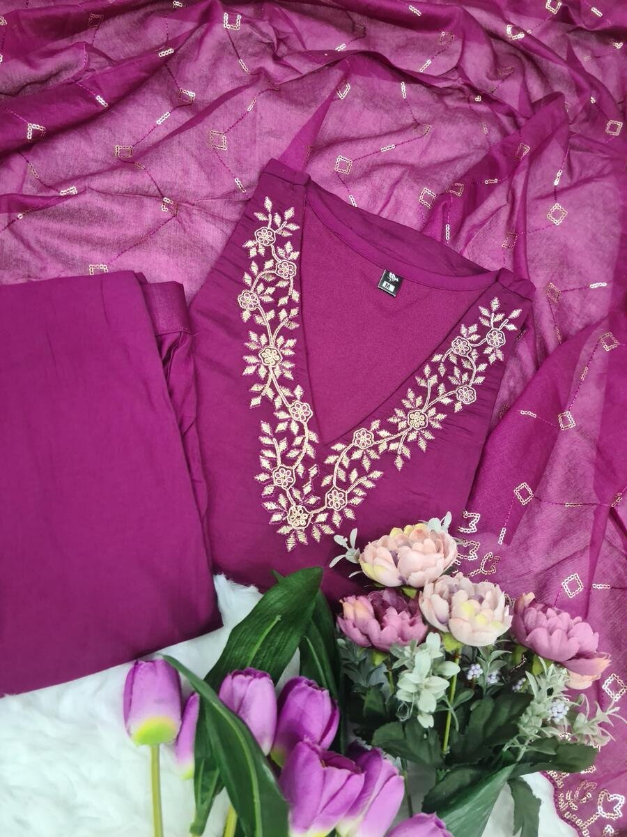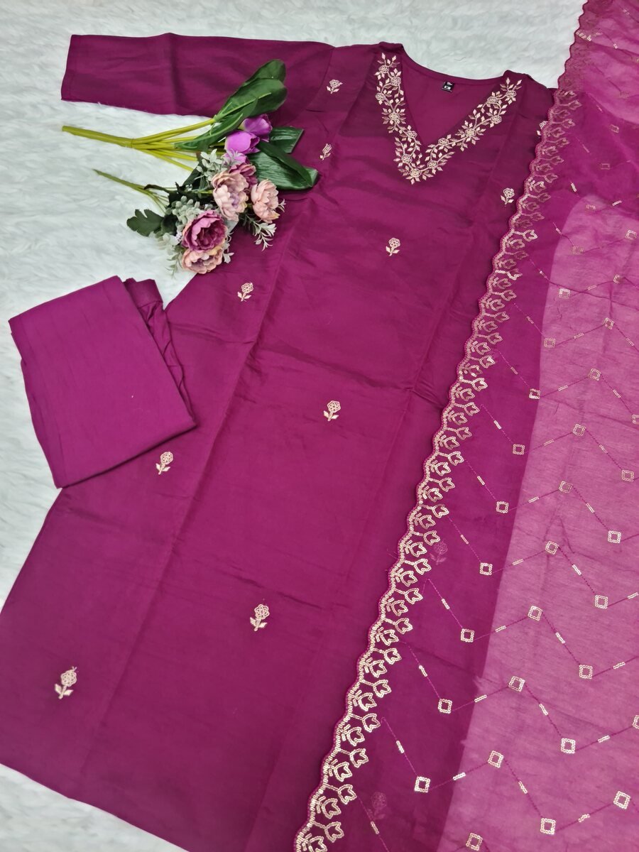 DESIGNER ROMAN SILK SEQUENCE CODING EMBROIDERY WORK TOP BOTTOM WITH DUPATTA PINK