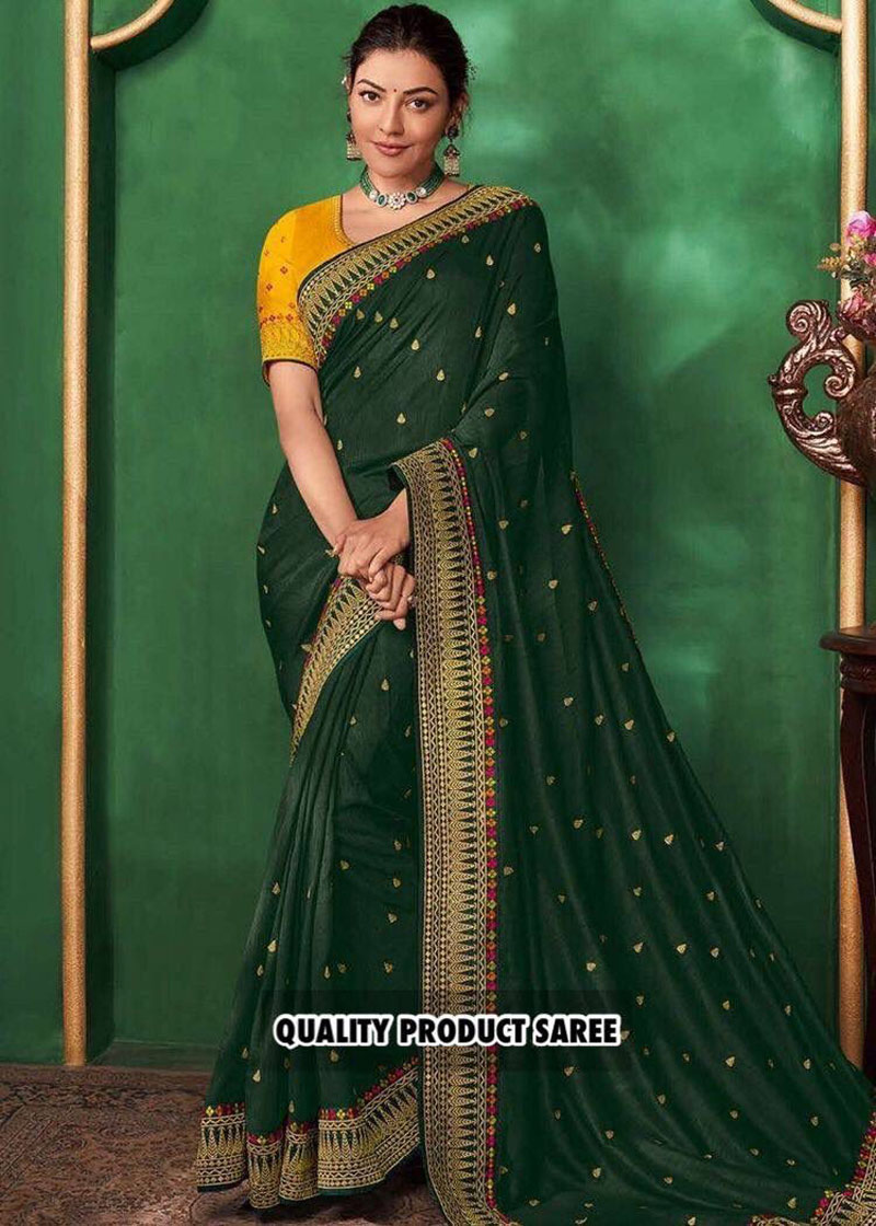 DESIGNER SANA SILK EMBROIDERY WORK SAREE WITH UNSTITCHED BLOUSE GREEN