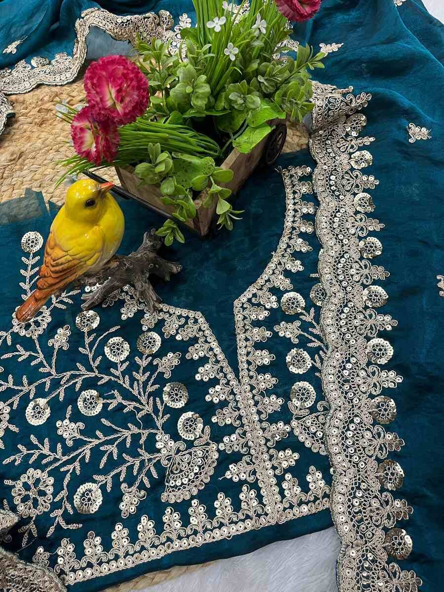DESIGNER SATIN SILK SEQUENCE WITH JARI DORI EMBROIDERY WITH CUTWORK BORDER SAREE WITH UNSTITCHED BLOUSE RAMA