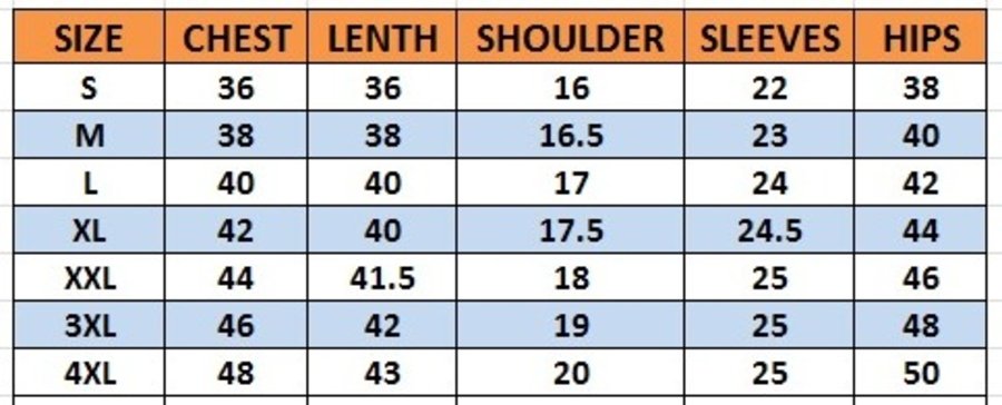 SIZE :- S(36),M(38),L(40), XL(42),2XL(44),3XL(46),4XL(48)