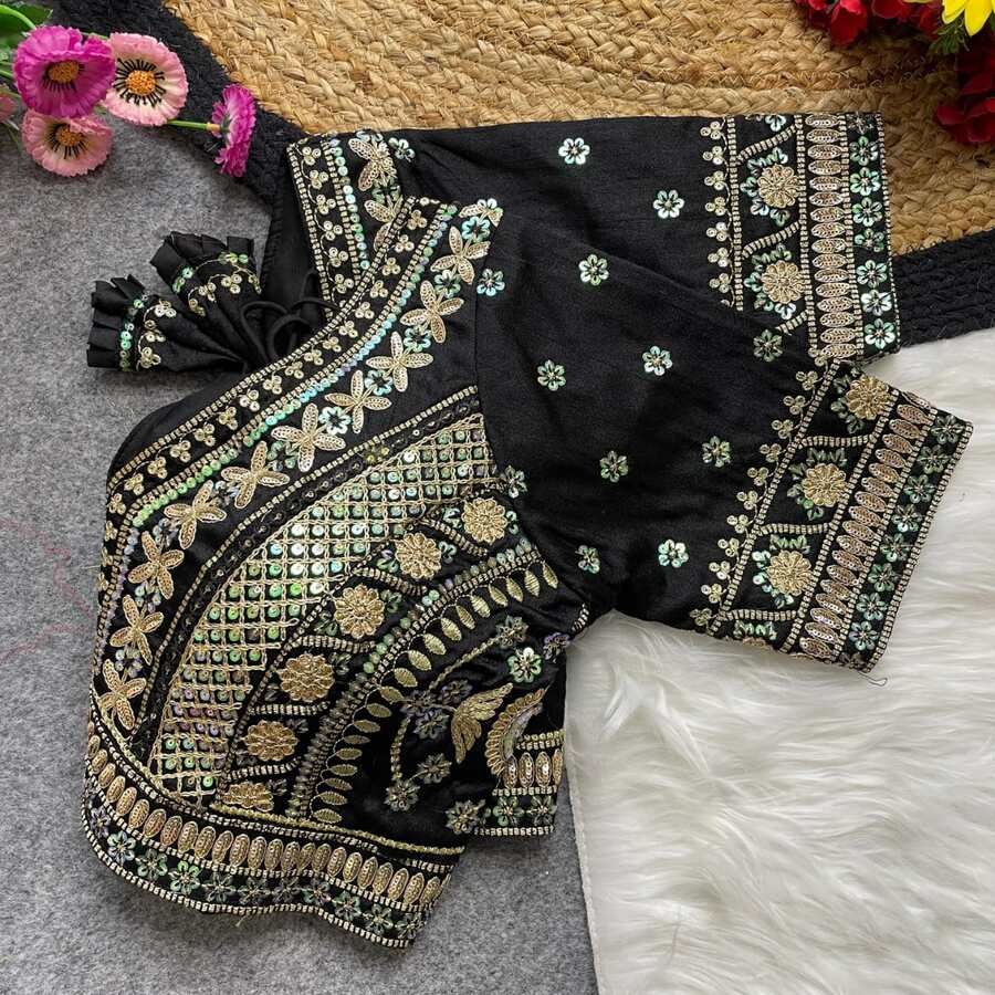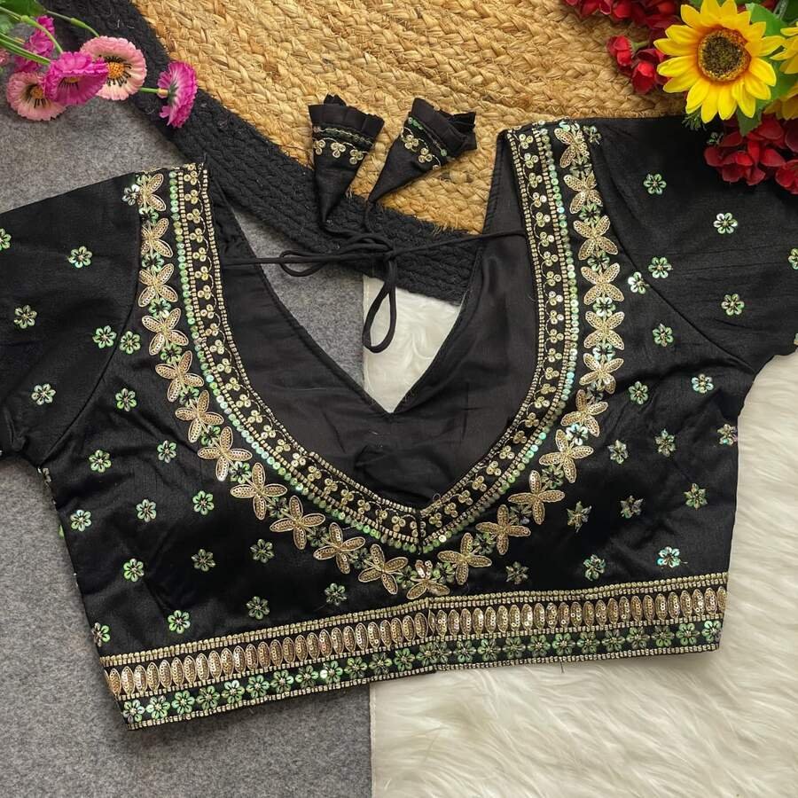 DESIGNER SOFT ITALIAN SILK CODING EMBROIDERY THREAD & SEQUENCE WORK STITCHED BLOUSE BLACK