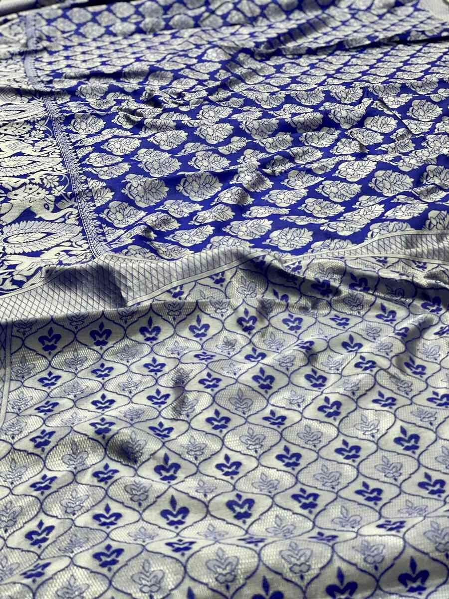 DESIGNER SOFT LICHI SILK JACQUARD WORK SAREE WITH UNSTITCHED BLOUSE BLUE