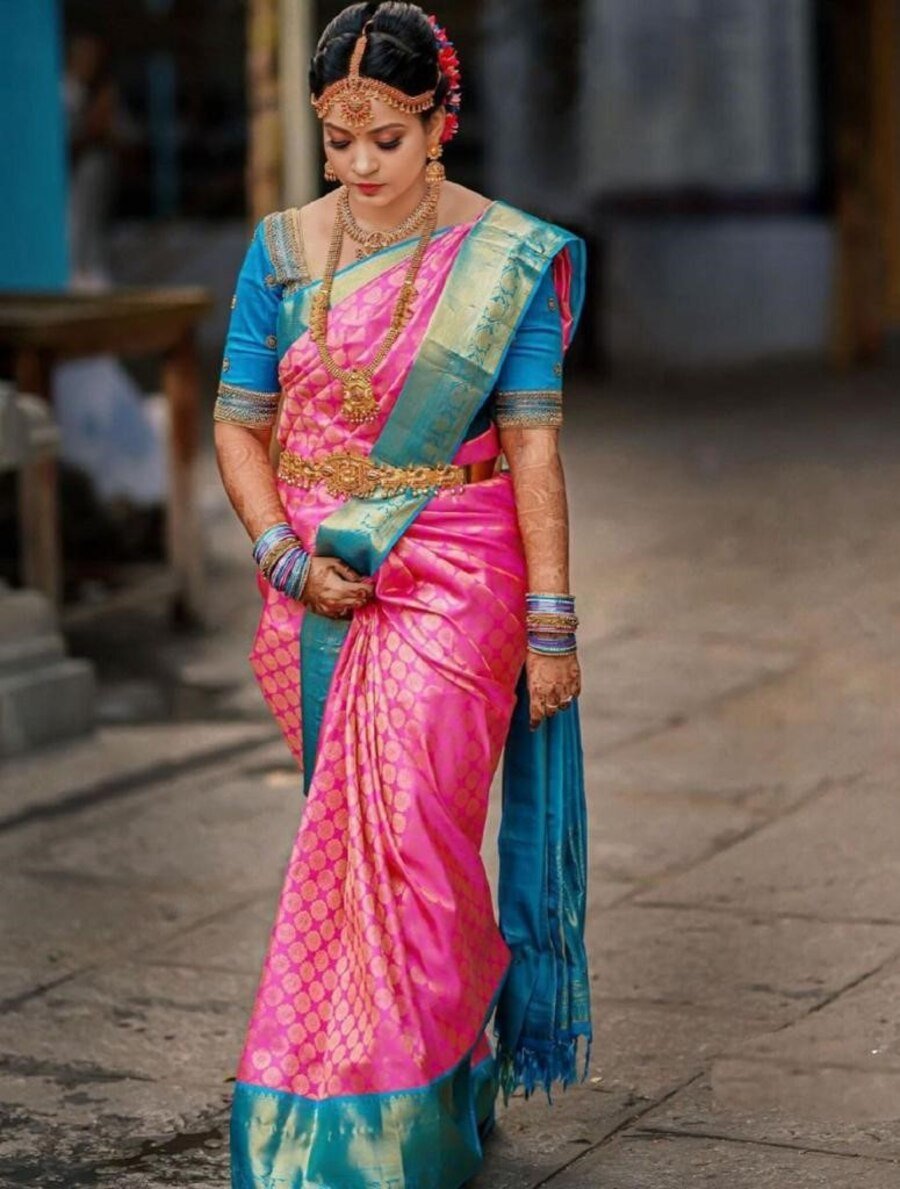 DESIGNER SOFT LICHI SILK WEAVING WORK SAREE WITH UNSTITCHED BLOUSE PINK